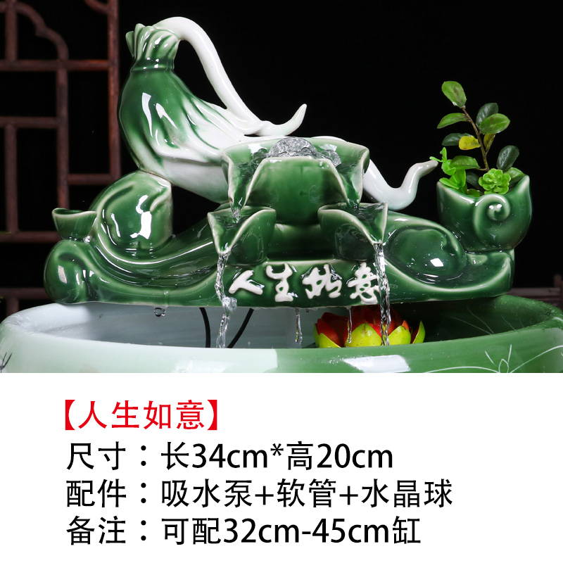 陶瓷自动循环流水养鱼缸瓷盆增氧过滤器室内喷泉瀑布造景装饰摆件