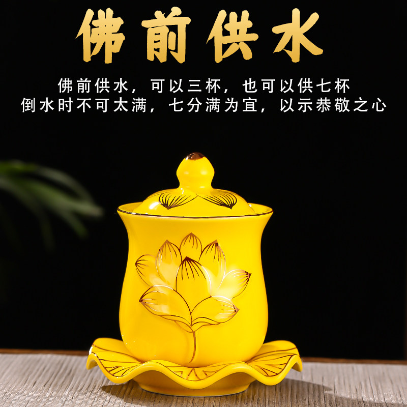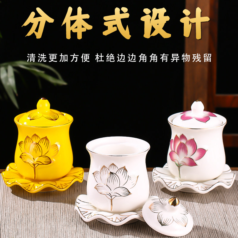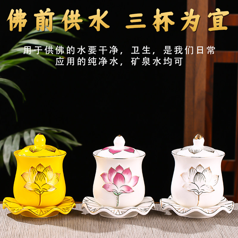 格宏 供杯陶瓷莲花佛前圣水杯观音供水杯佛具佛堂大悲供佛净水杯