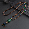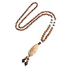 简约百搭民族风毛衣链长款佛珠项链男女复古高档木质棉麻配饰挂件