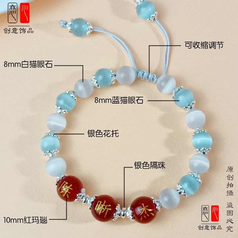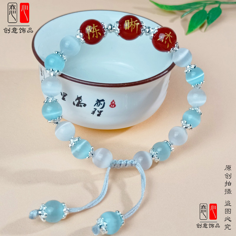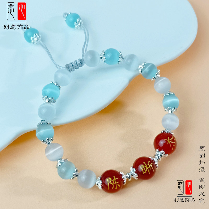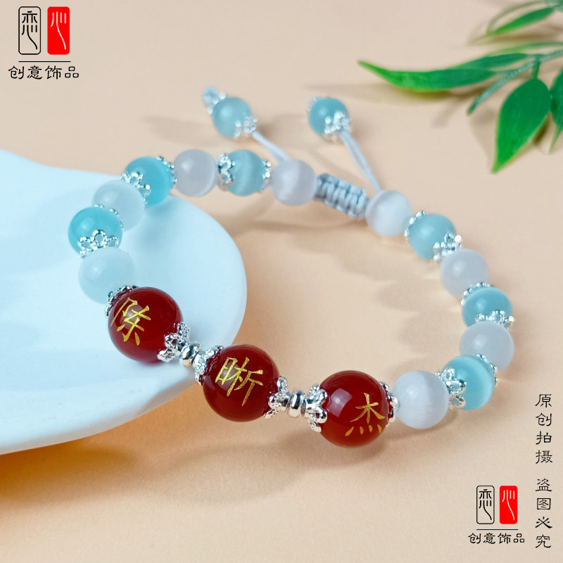 定制刻字红玛瑙带名字珠子手链百家姓转运珠编织情侣闺蜜手串礼物