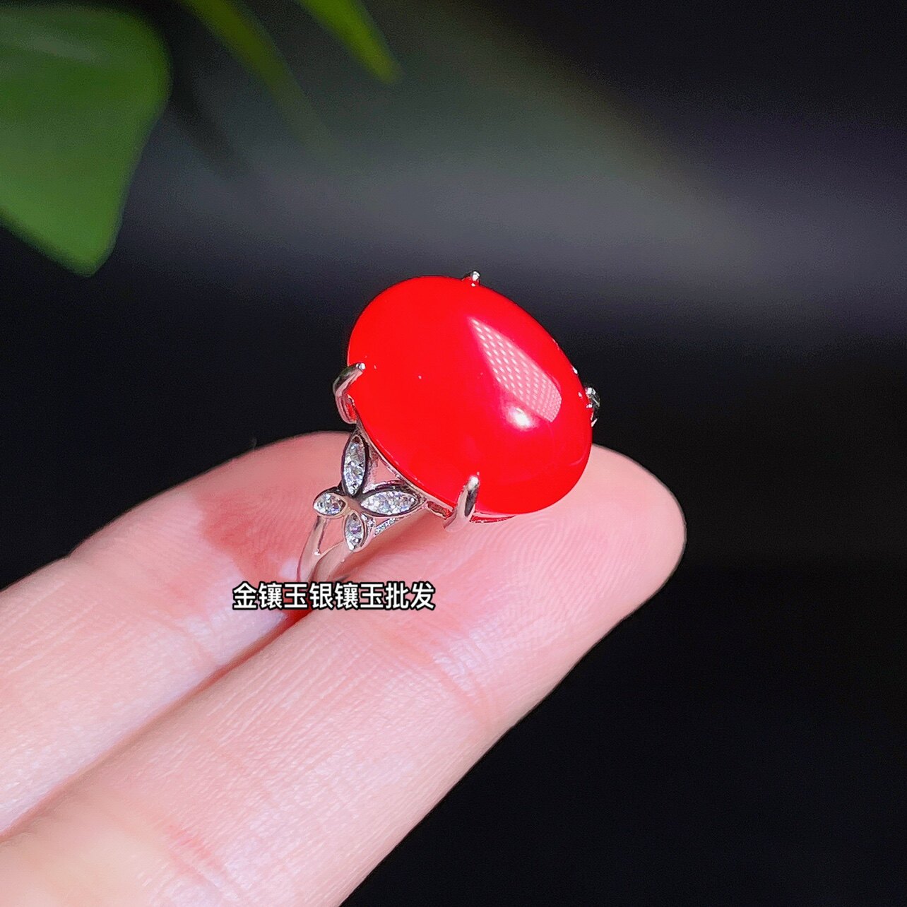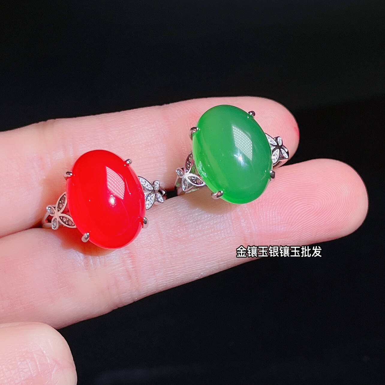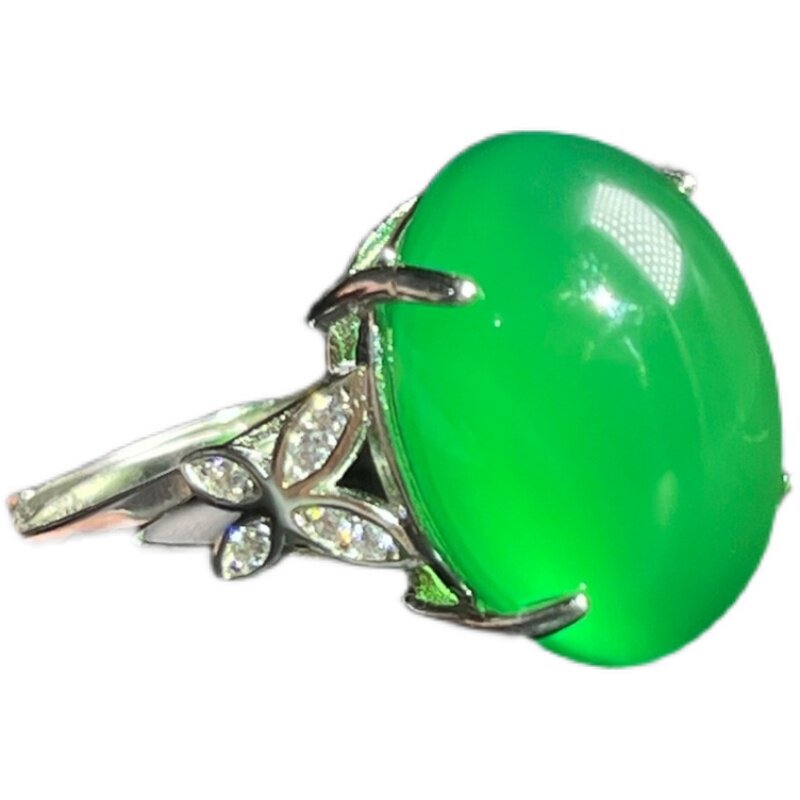 帝王绿玉髓戒指s925纯银镶嵌大红色玛瑙指环开口可调节宝石玉女戒