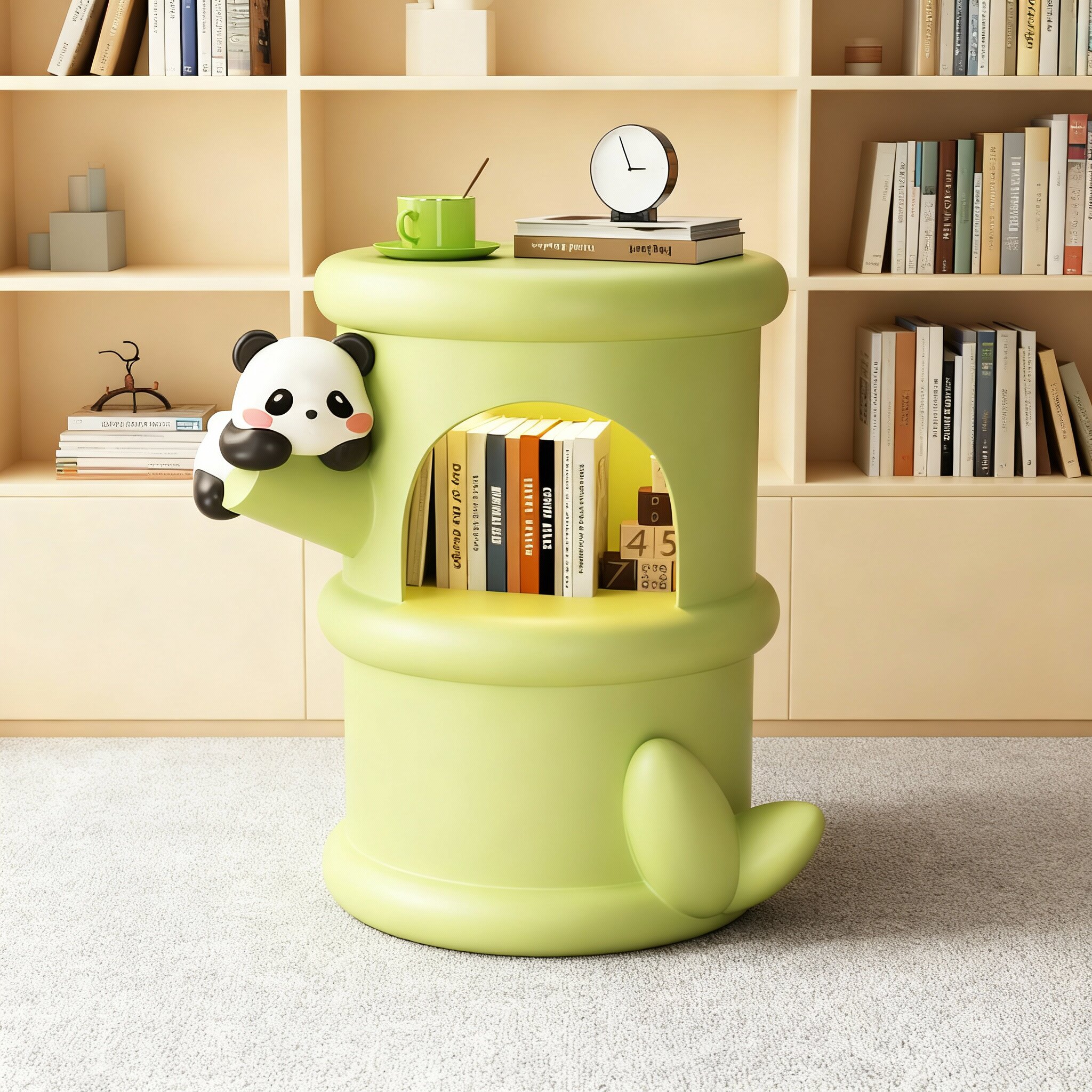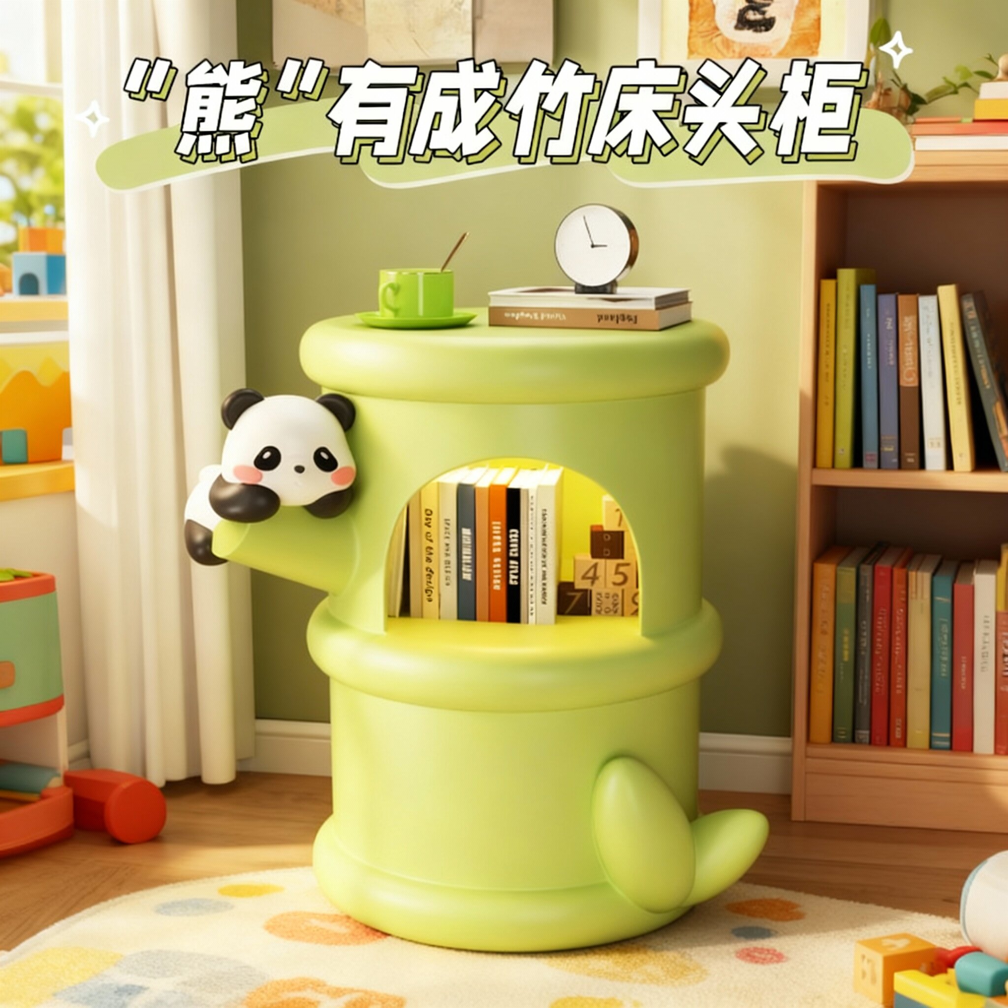 卡通熊猫造型床头柜儿童房收纳储物柜可爱绿色竹节柜