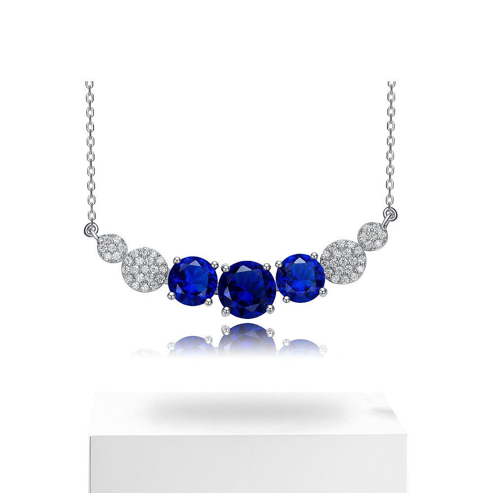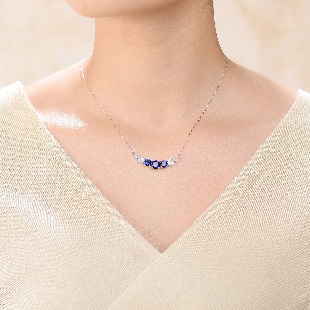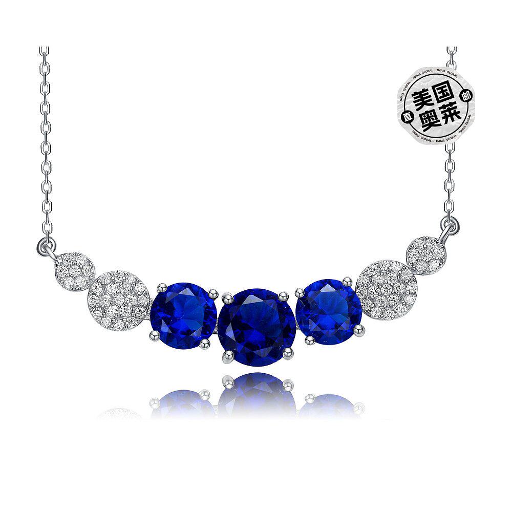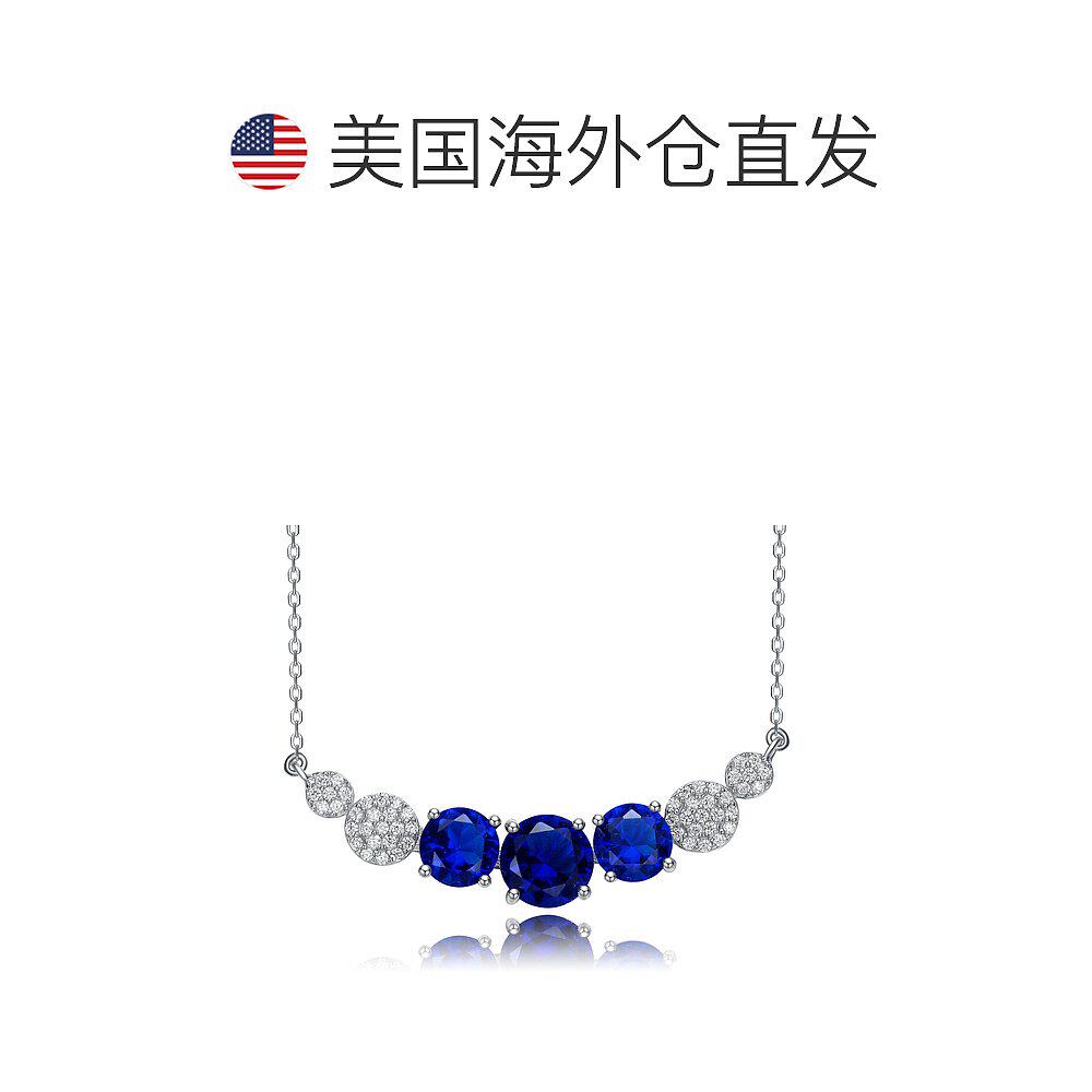 自营 genevive纯银配蓝色蓝宝石和钻石立方氧化锆雪佛龙吊坠项链