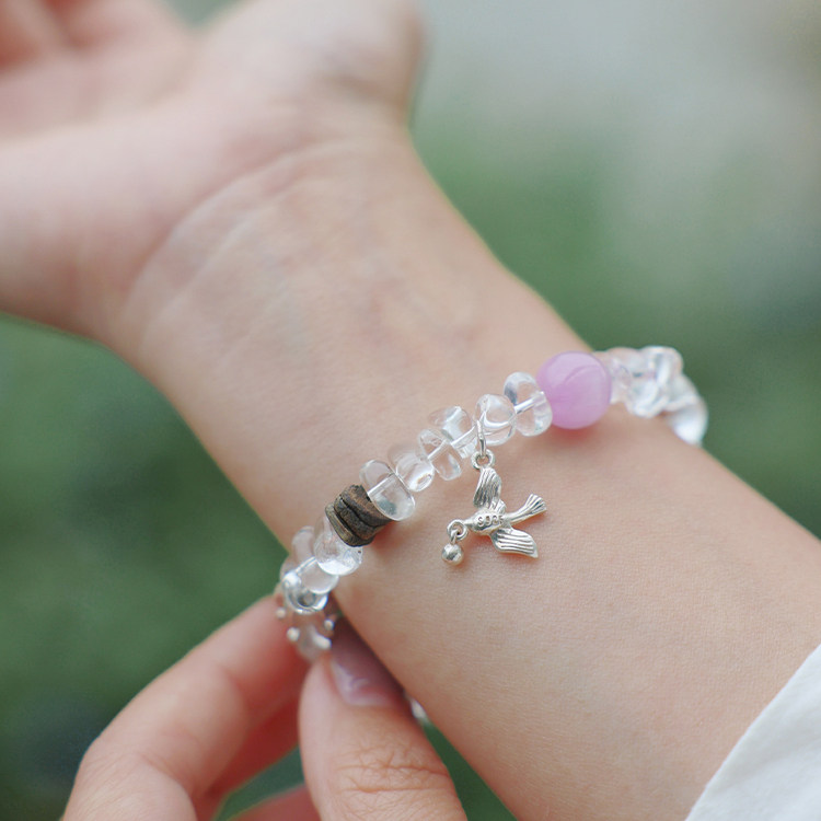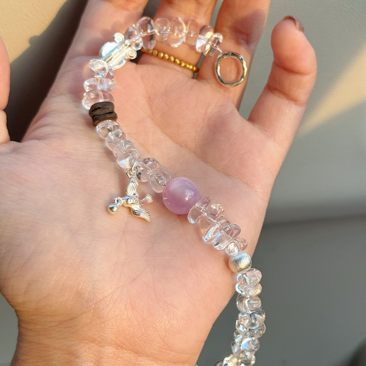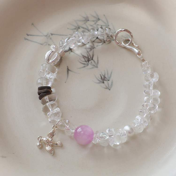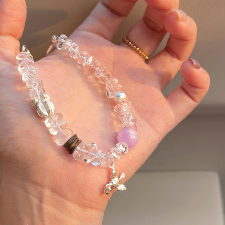 「飞鸟叙」高频净化~清凉感原创天然白水晶随形手串新中式手链