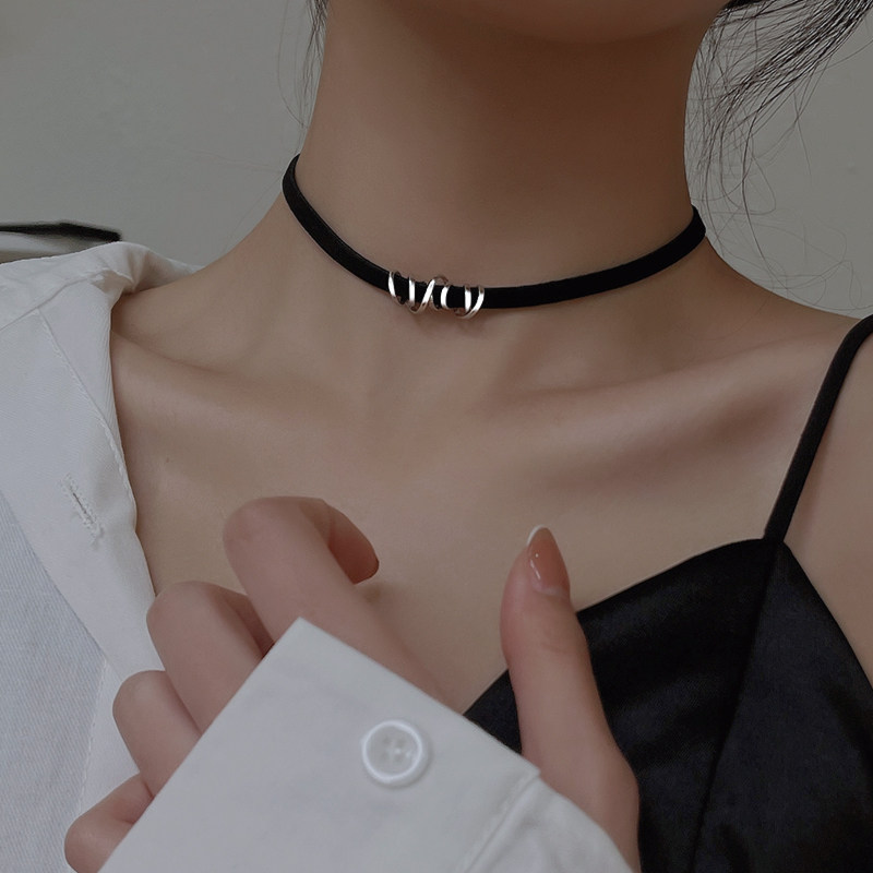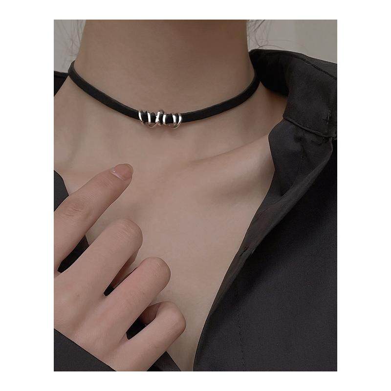 925纯银黑色choker项链女2026新款爆款脖小众颈链颈带项圈锁骨链