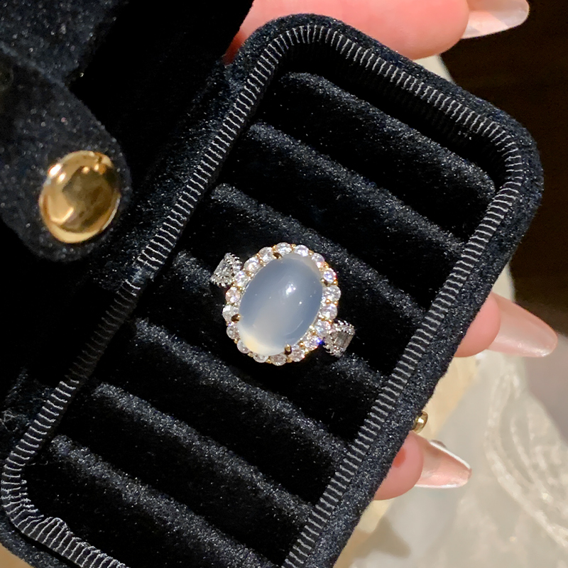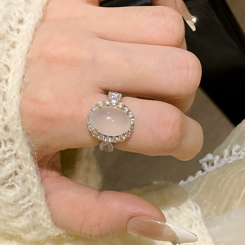金华玉露~超大鸽子蛋玉石戒指女小众设计开口尾戒指女轻奢高级感