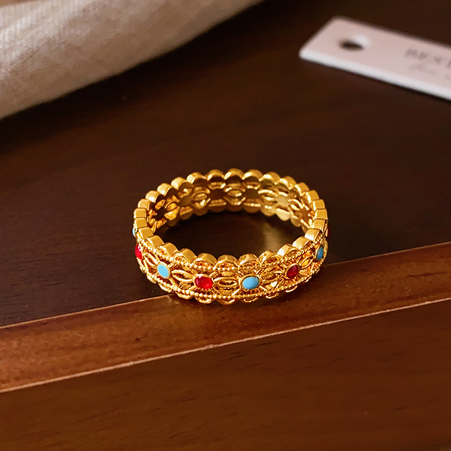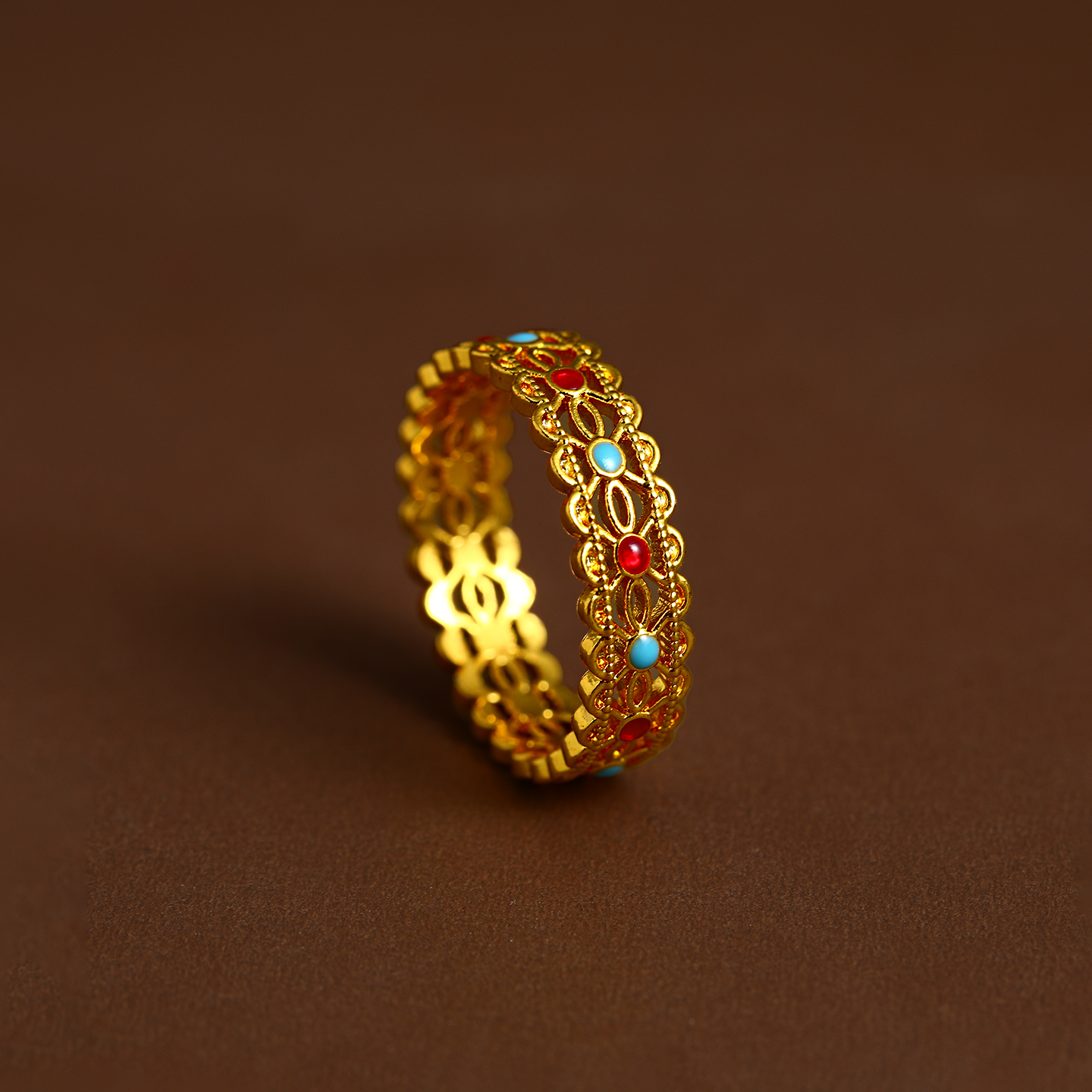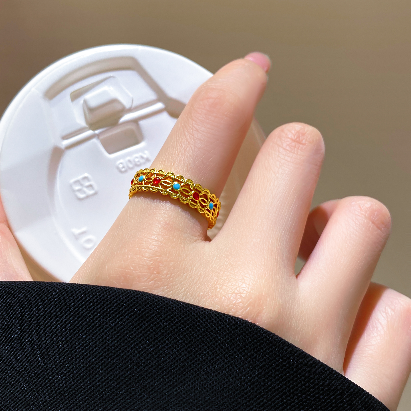 古法沙金珐琅彩花丝戒指女2025新款爆款开口戒轻奢高级感叠戴指环