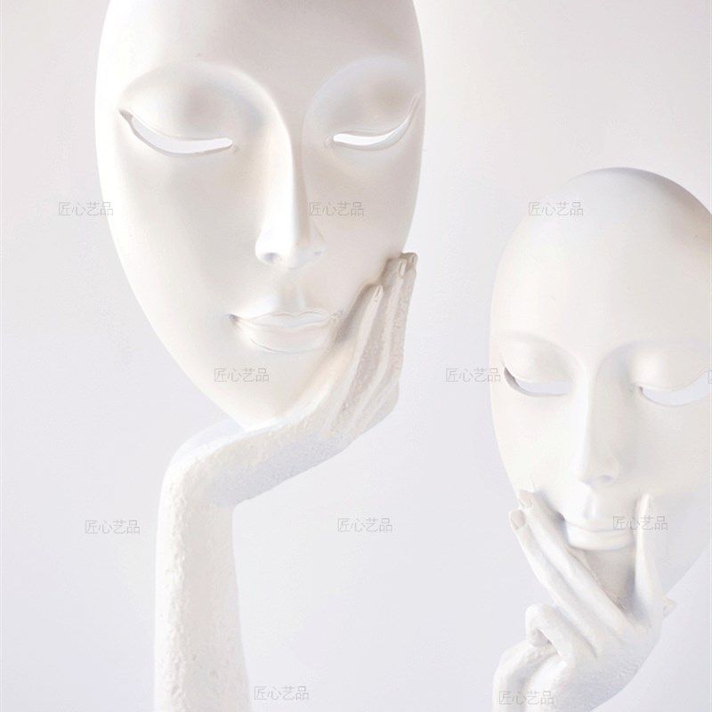 纯白色面具人脸谱创意树脂抽象艺术客厅卧室家居办公书房人脸摆件