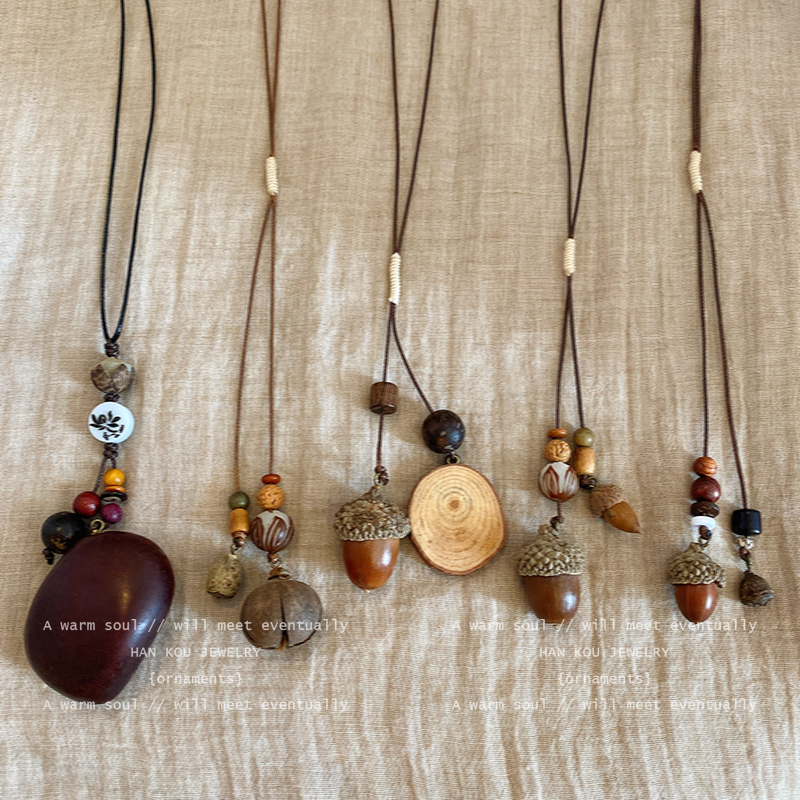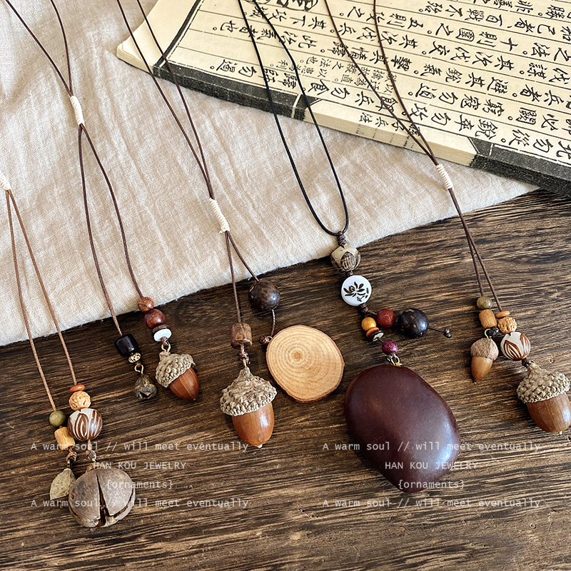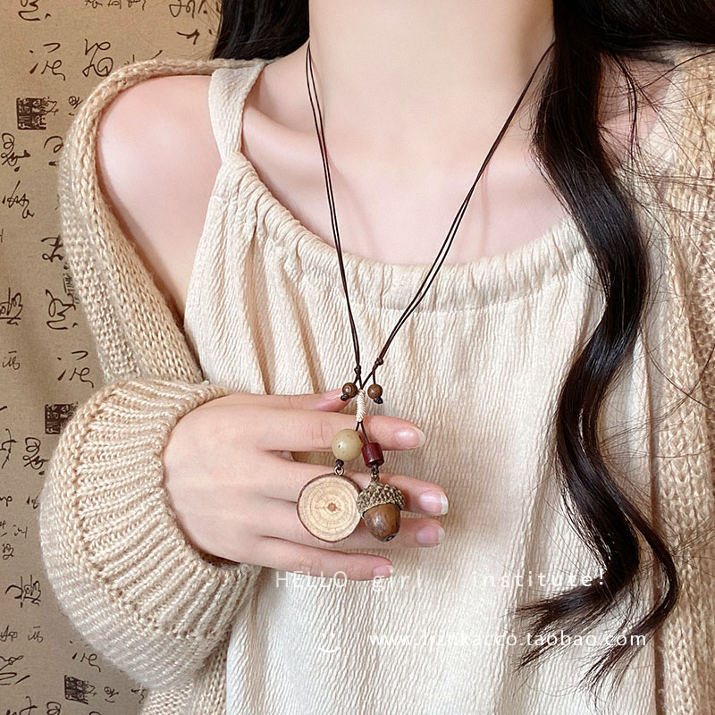 复古森系长款木质吊坠项链女秋冬高级感毛衣链民族风衣服装饰配饰