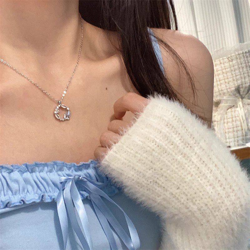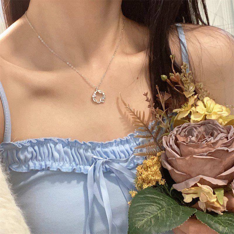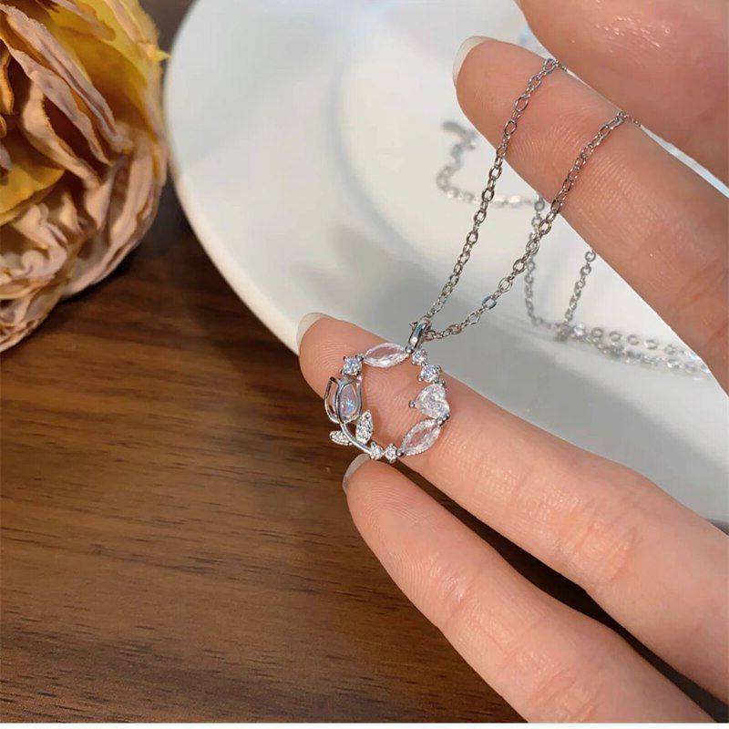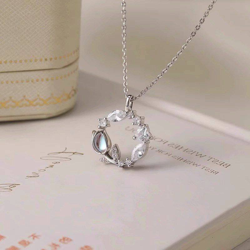 圆形玫瑰花轻奢郁金香花环项链女时尚锁骨清新链送甜美女友新款
