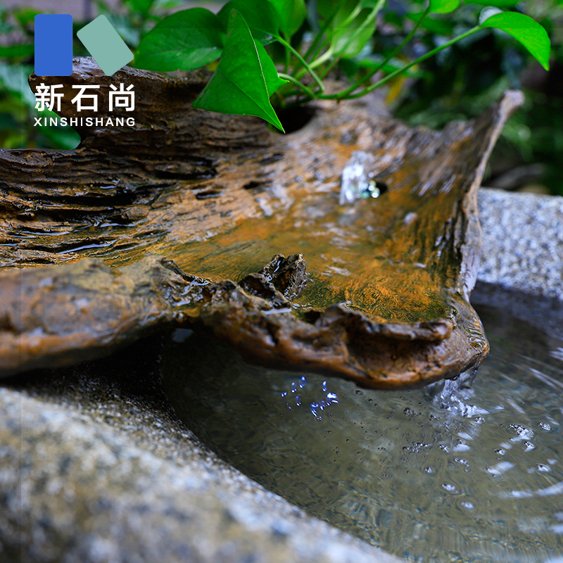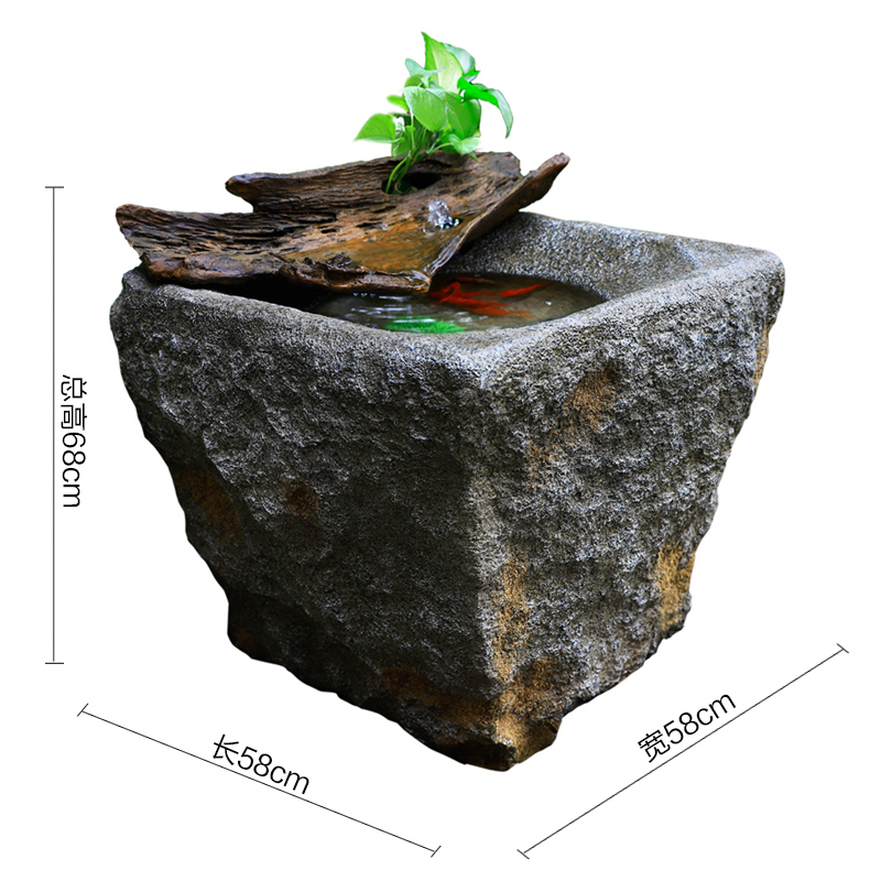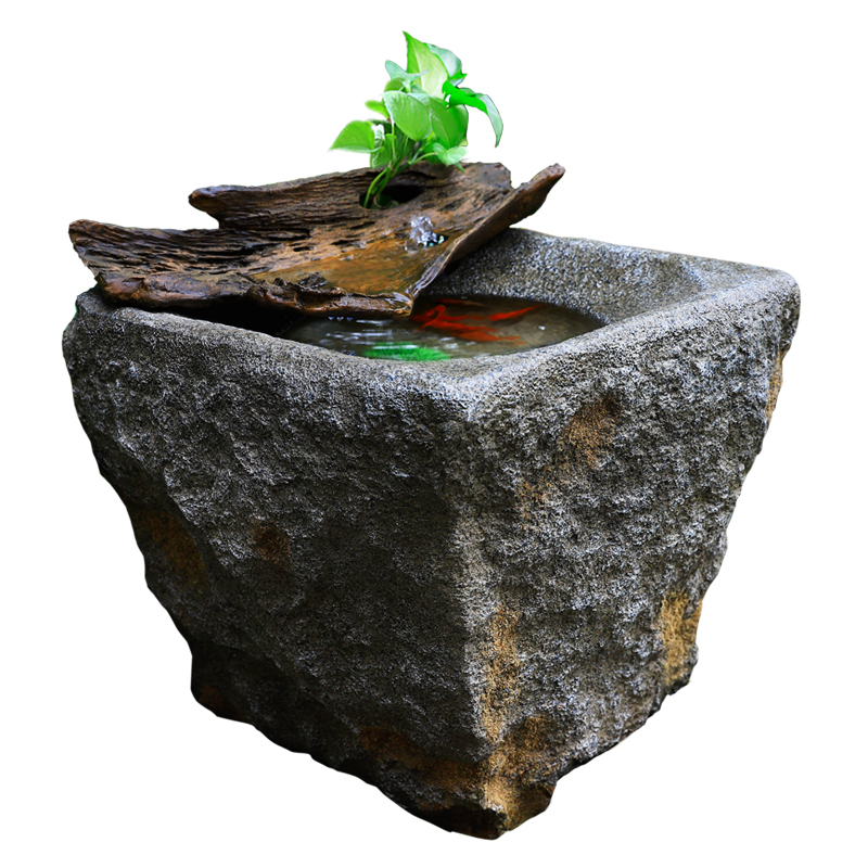 石臼流水鱼池鱼缸庭院水景老石槽摆件室内流水喷泉水槽仿真老石器