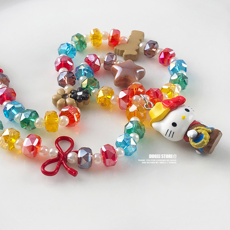 多喜商店【乐园追猎者】Hello Kitty牛仔凯蒂猫红蝴蝶结串珠项链