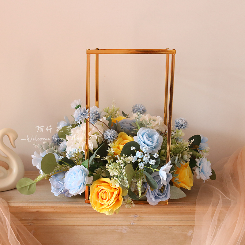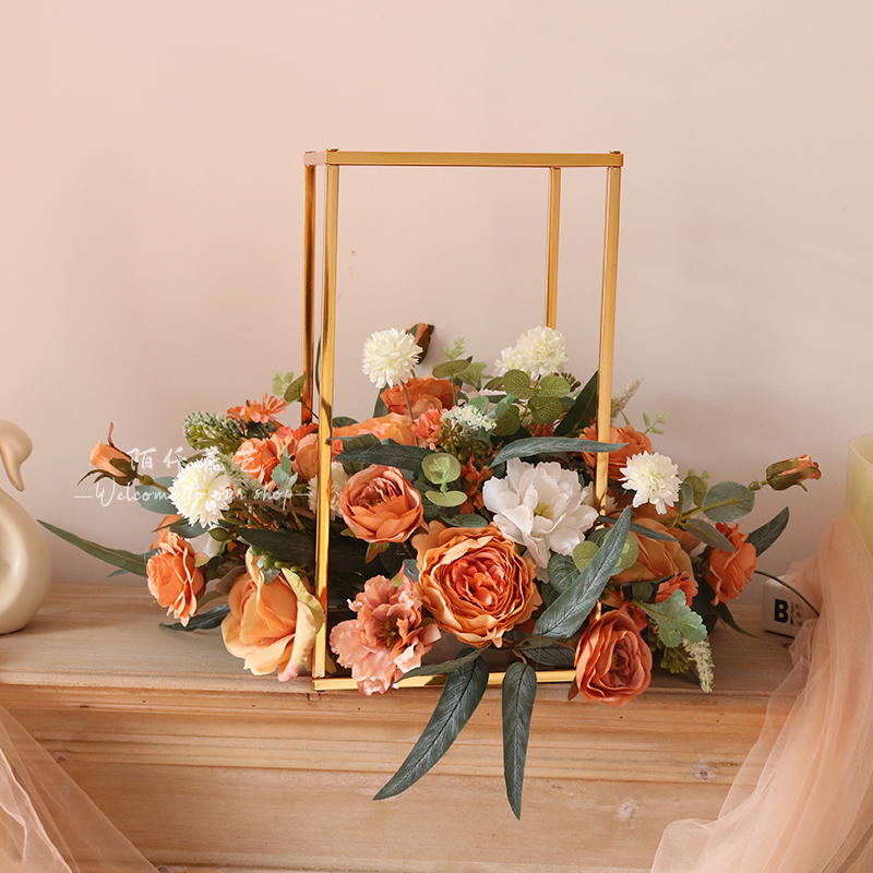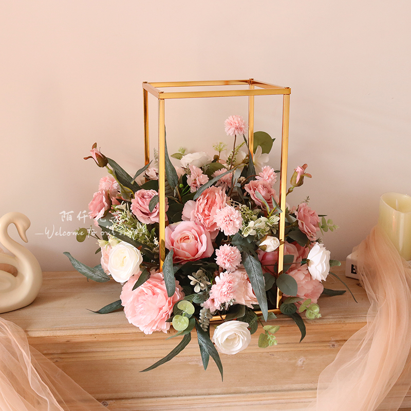 西式仿真花艺玫瑰花球几何摆件家居客厅餐桌假花花艺摆设装饰拍照