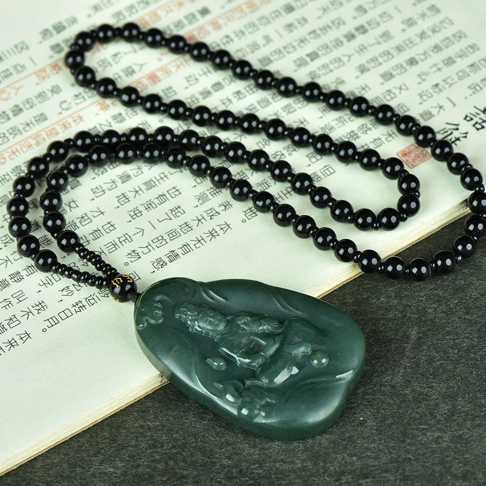 精品和田玉青玉观音佛像吊坠男款简约小众玉石项链平安挂件饰品
