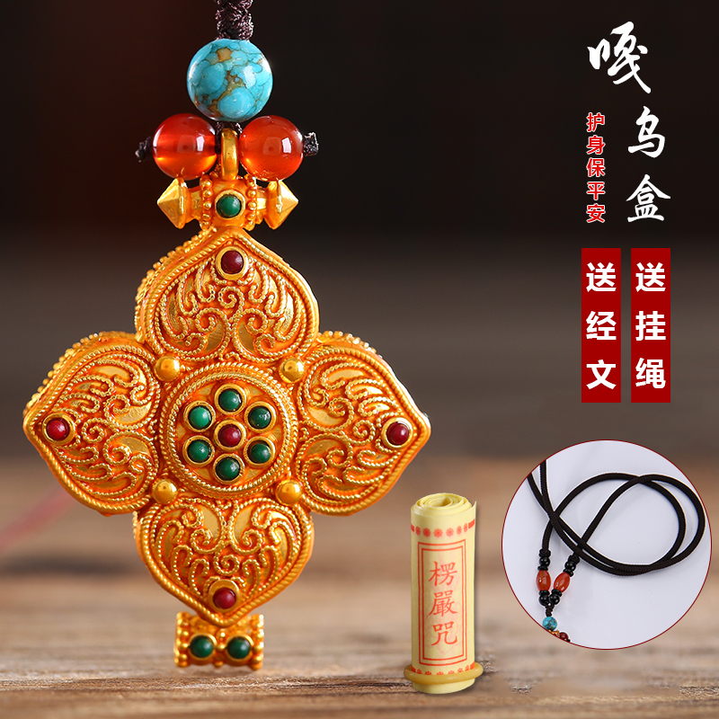 极速博福a鎏金楞严咒经文挂件男女通用随身配件情侣嘎乌盒个性吊