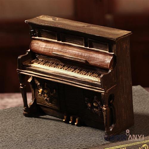 复古树脂钢琴模型 陈列道具美式乡村书柜咖啡厅橱窗装饰品摆件
