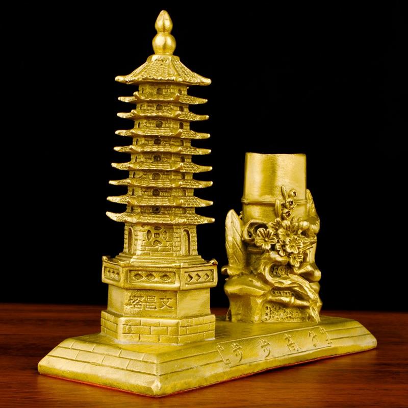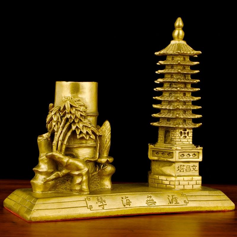 纯铜文昌塔笔筒摆件九层宝塔文昌办公室书房装饰品工艺品礼品铜塔