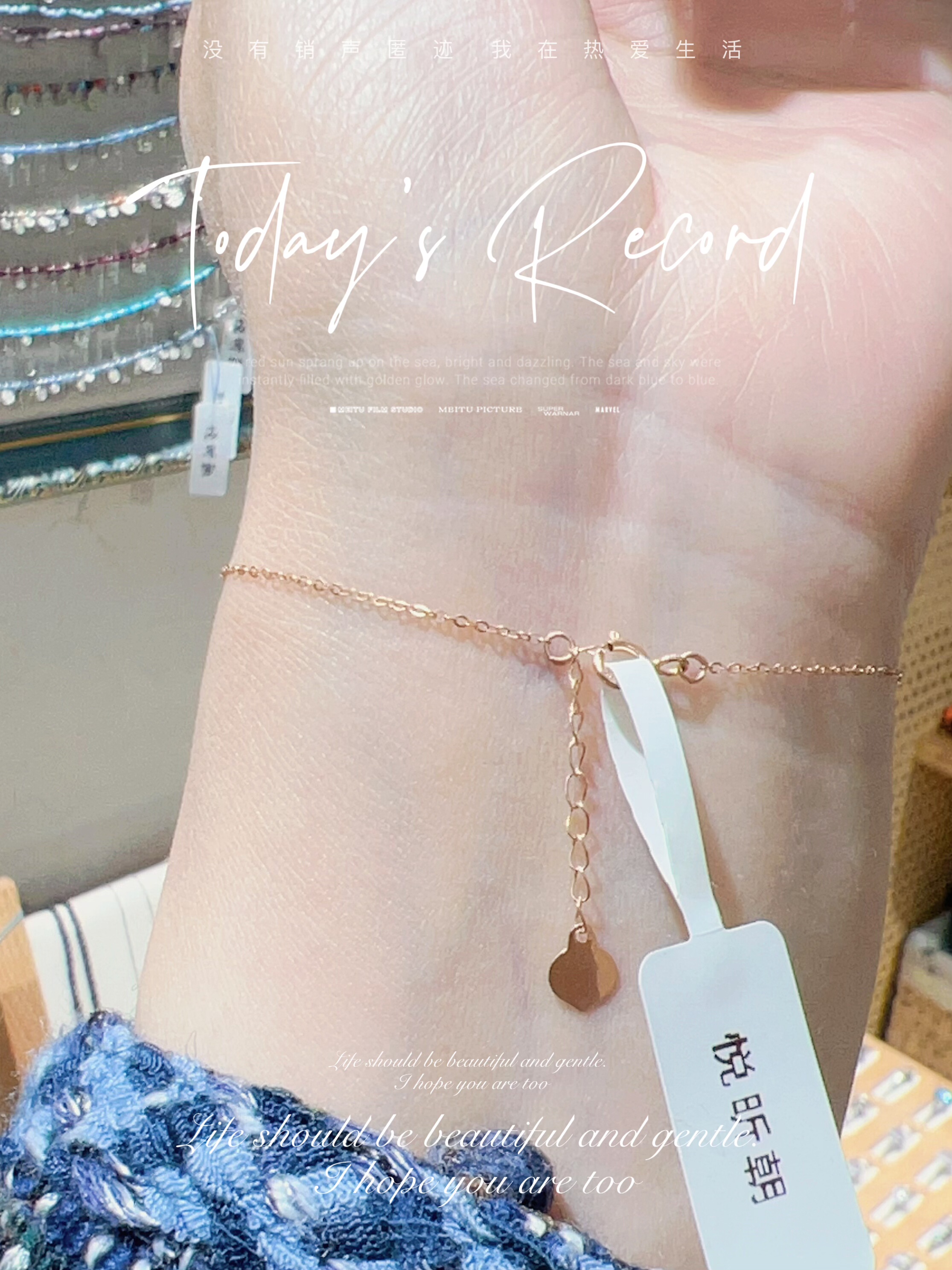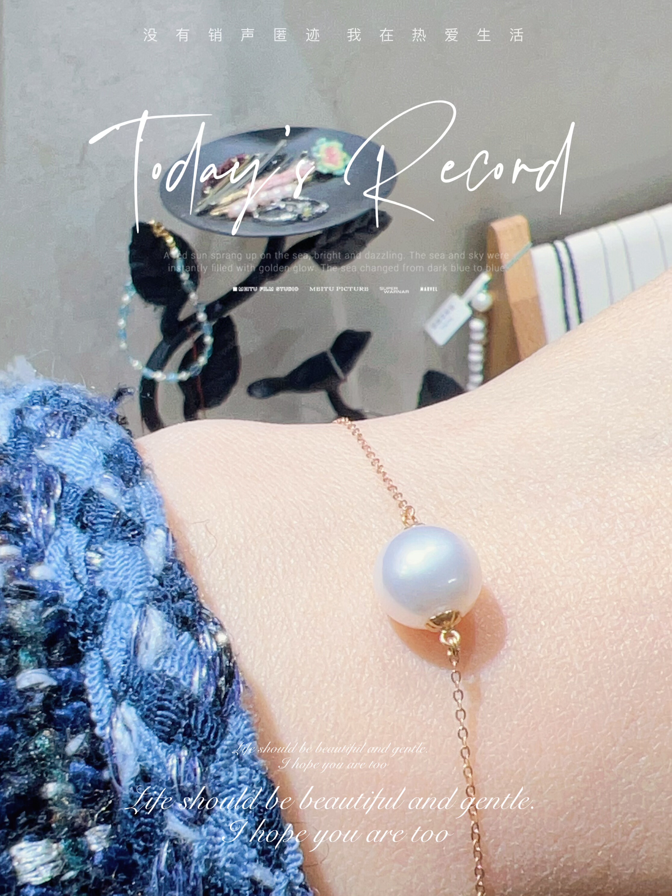 天然淡水珍珠正圆光感强18k玫瑰金极细叠戴手链女款原创简约9mm