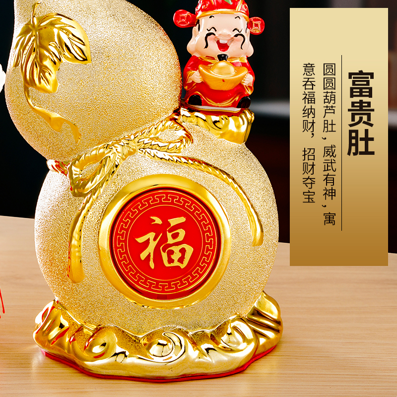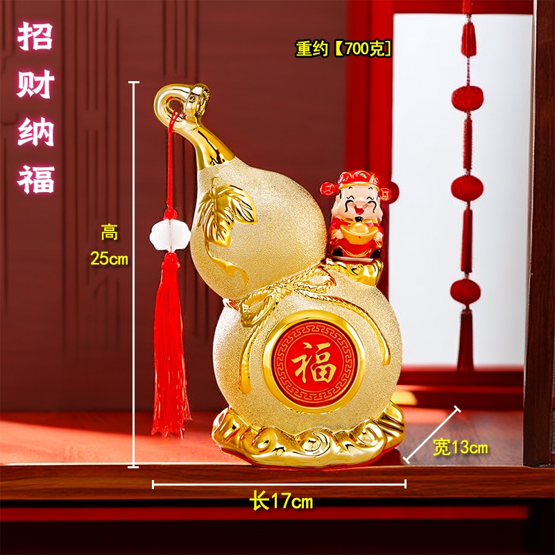 沙金陶瓷葫芦摆件招财家居客厅酒柜电视柜装饰品乔迁新房新年摆设