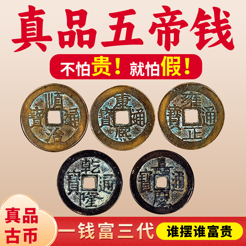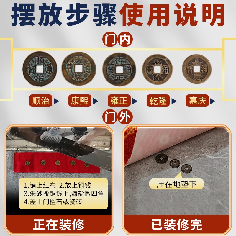 真品五帝钱压门槛过门石下压硬币入户门装修乔迁币纯黄铜铜钱古币