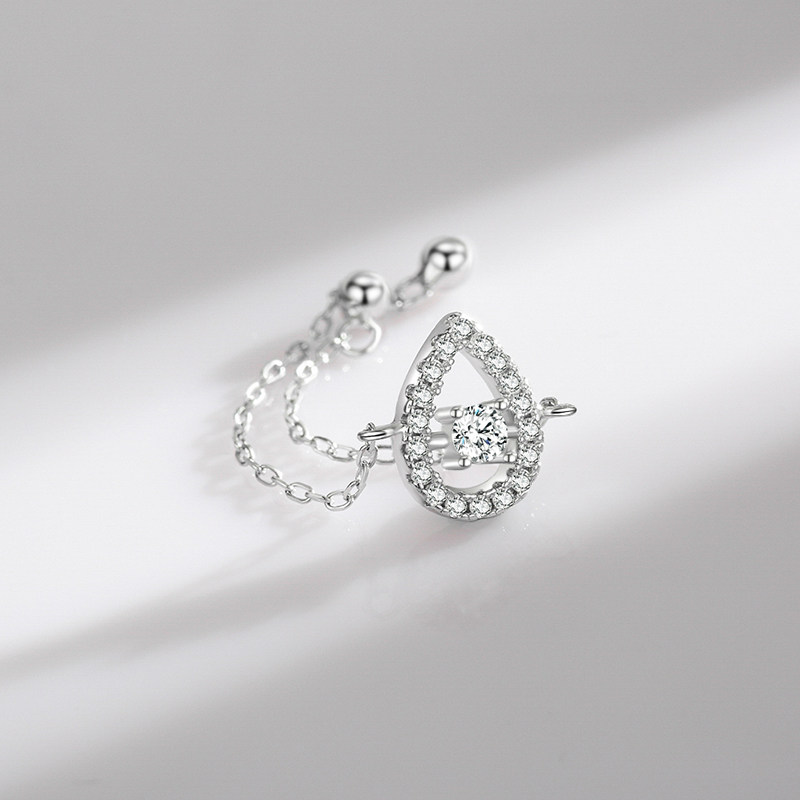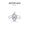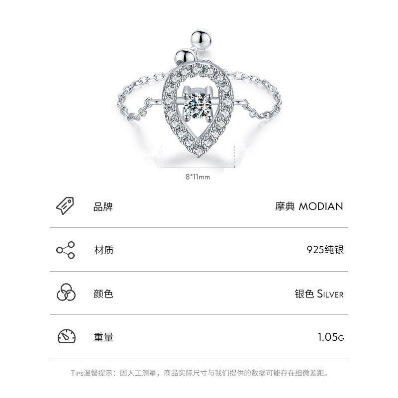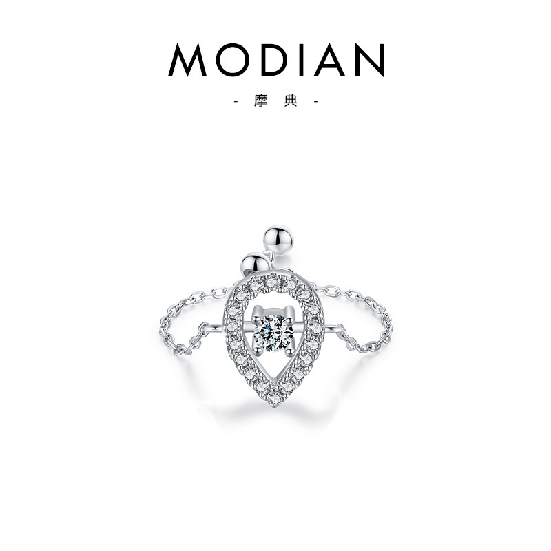 MODIAN 925纯银水滴镂空镶钻戒指轻奢百搭小众时尚可调节链式戒指