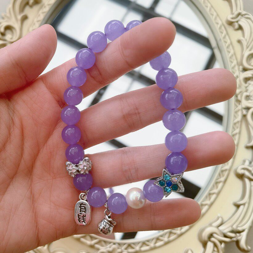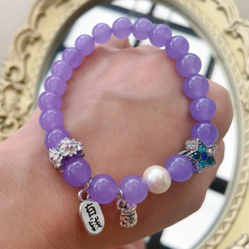 新款九紫离火手串女紫色玉髓玛瑙手链女多巴胺少女心配饰原创设计