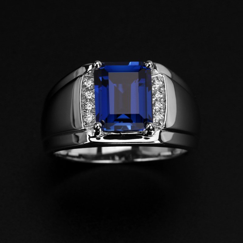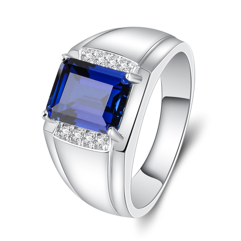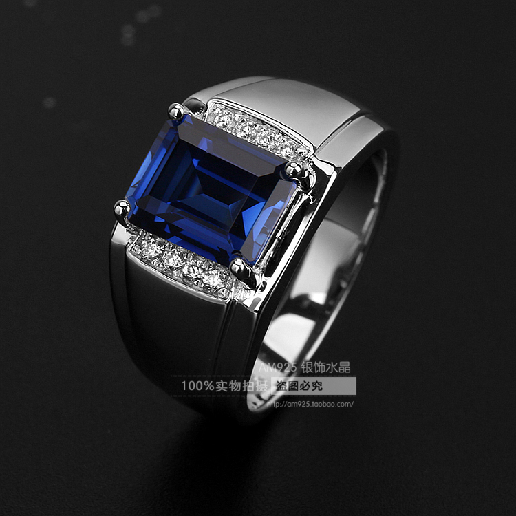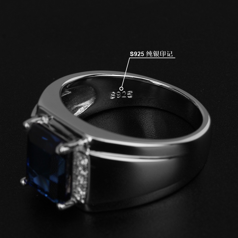 彩宝戒指男士925银镀金镶嵌蓝宝石送潮男礼物高级感设计时尚刻字