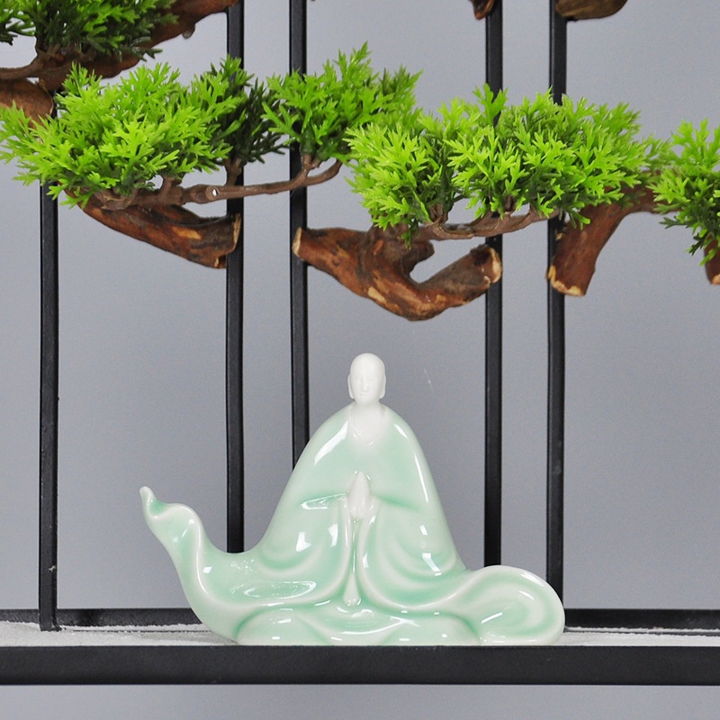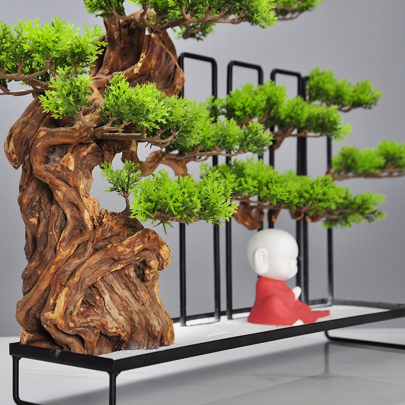 新中式崖柏根雕摆件 创意假山迎客松摆件 别墅办公室家居玄关摆件