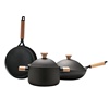 样板间定制家居新中式厨房黑色原木手柄精铁炒锅平底汤锅设计摆件
