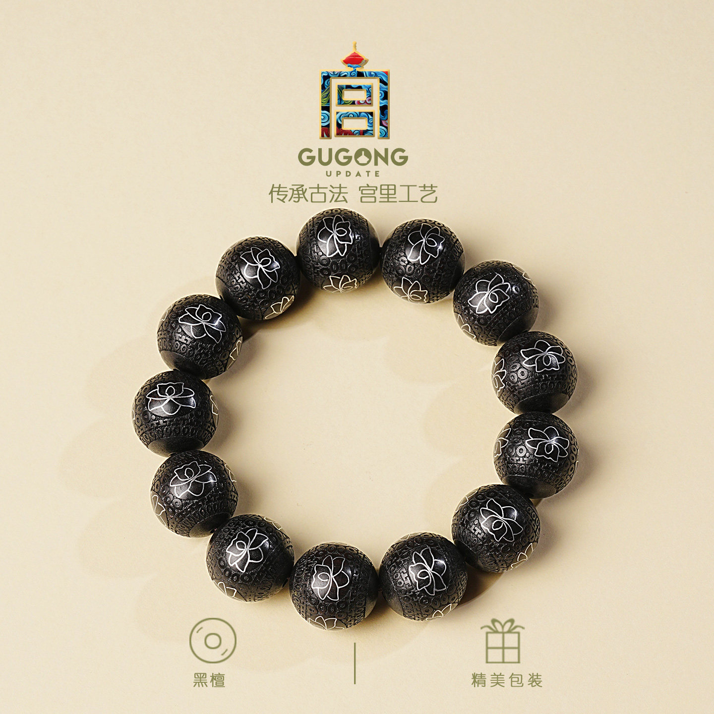 宫里上新黑檀手串男黑檀木串珠黑色手链冷门文玩盘玩高级生日礼物