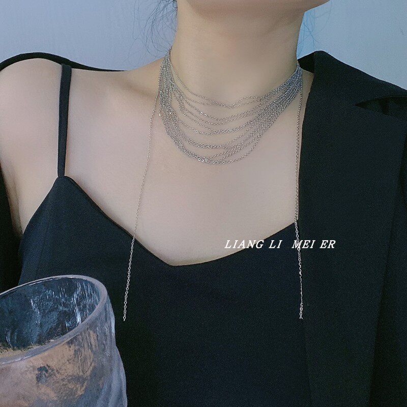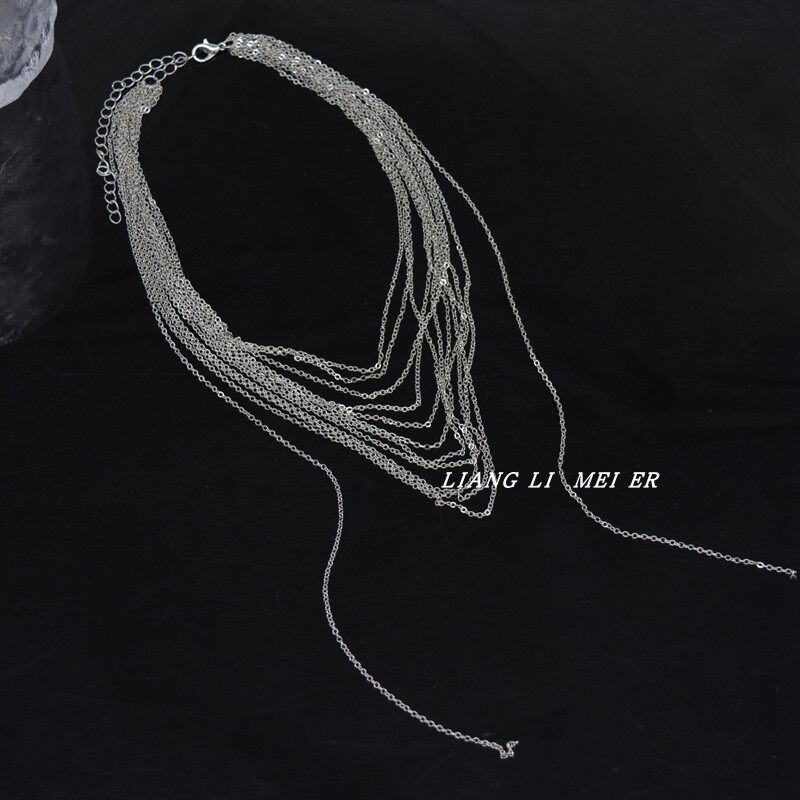 欧美夸张走秀款摩登多层长流苏项链轻奢宴会风金属气质项饰女配饰