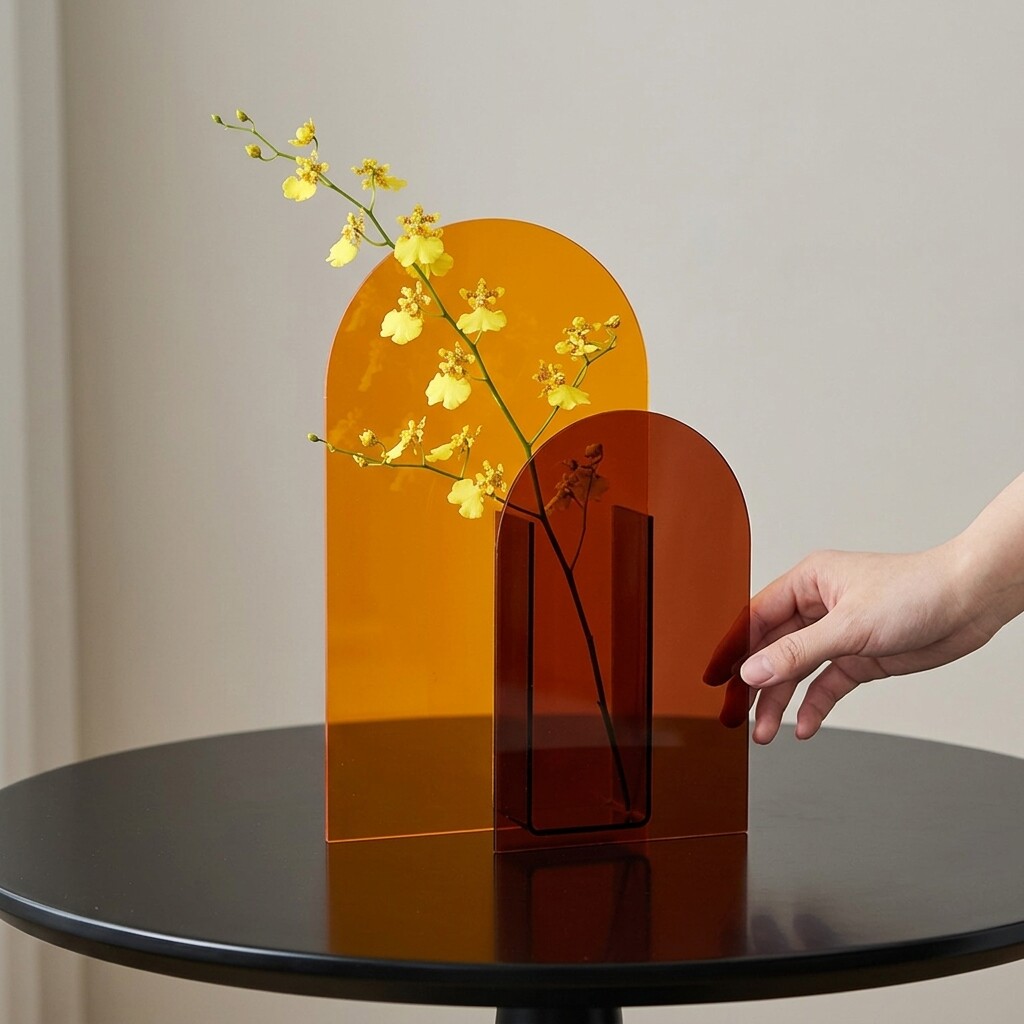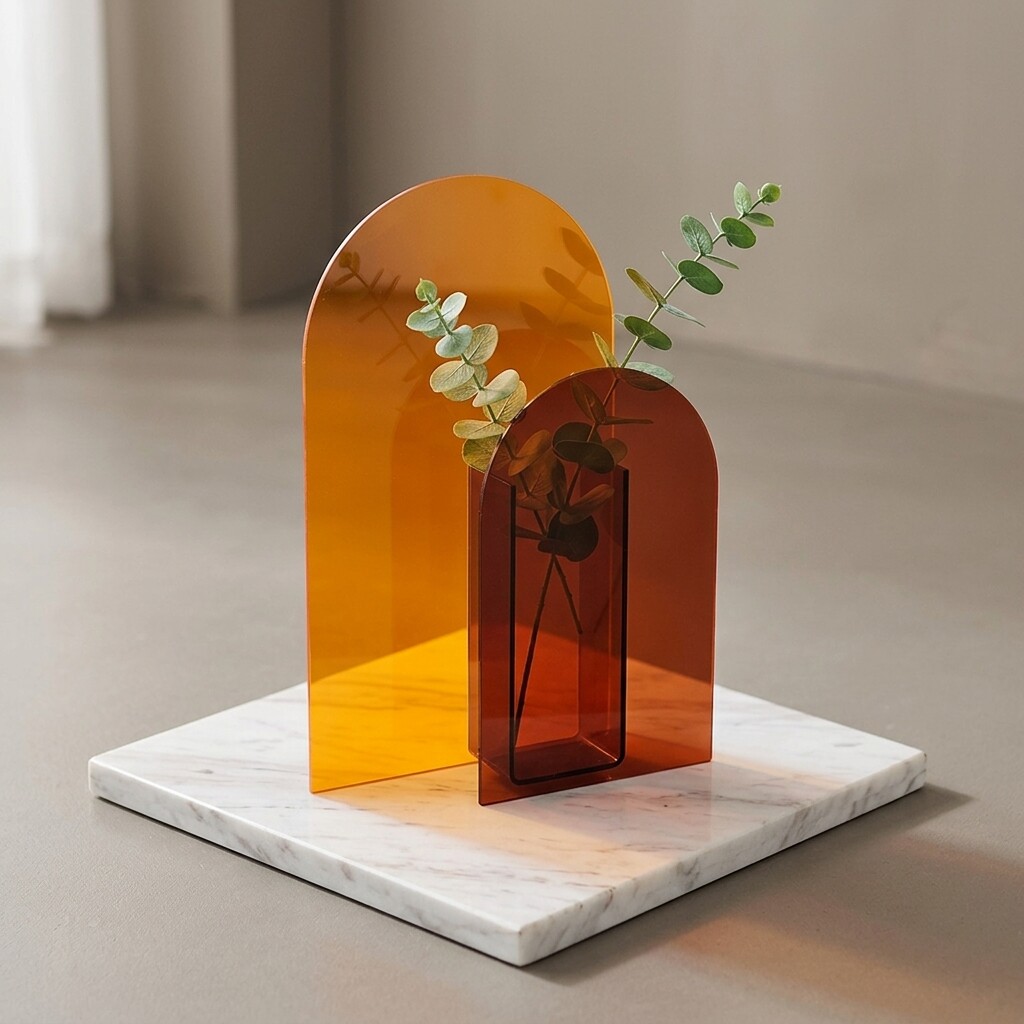 现代简约亚克力拱形装饰摆件橙色桌面家居创意艺术品