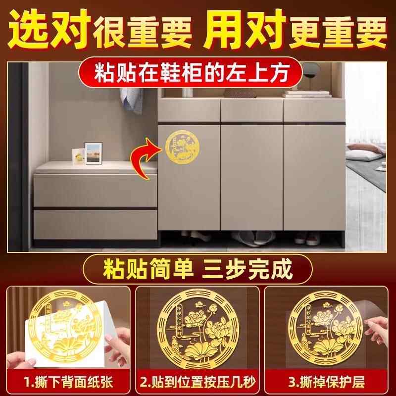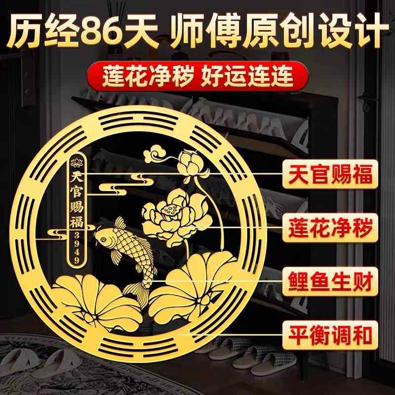 开 门见鞋柜荷花鲤鱼金属贴天官赐福进入户门口对邻居室内装饰摆