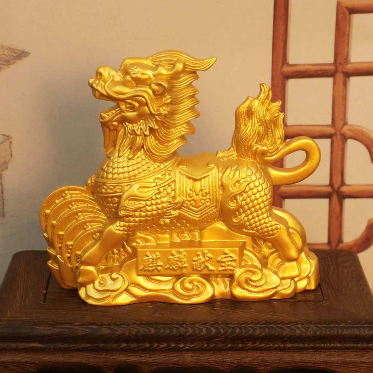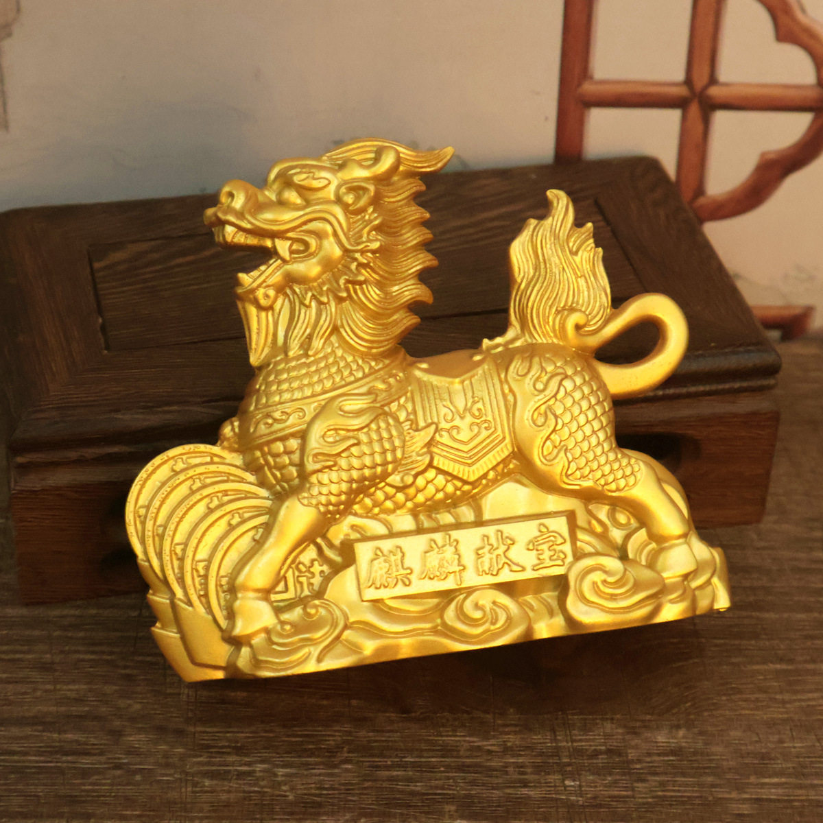 沙金麒麟摆件麒麟献宝家居玄关办公室店铺桌面小号装饰品瑞兽麒麟