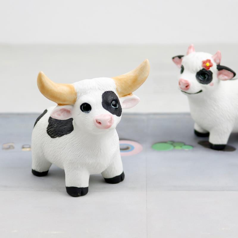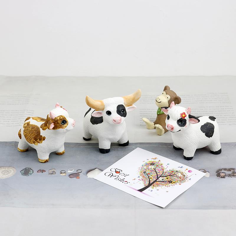 招财小萌牛陶瓷摆件创意家居饰品可爱公母牛车载摆设办公桌面礼物