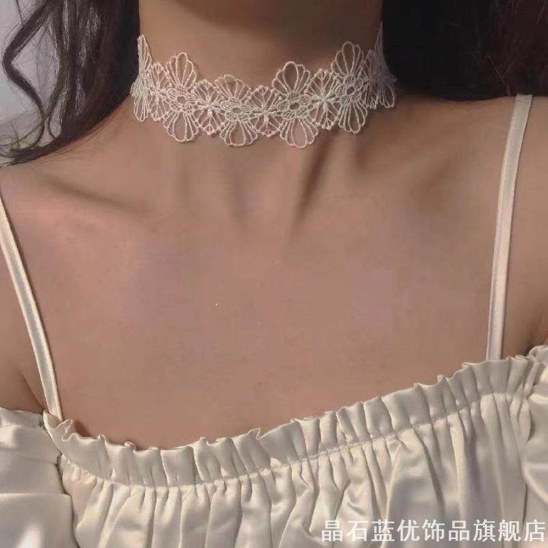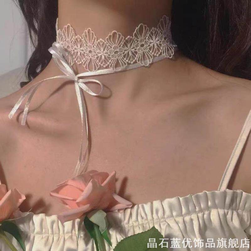 挡疤痕遮颈纹系带脖子配饰气质白色蕾丝项圈颈链锁骨链少女暗黑系