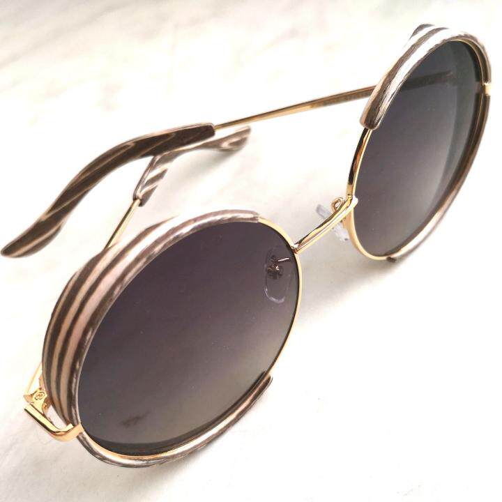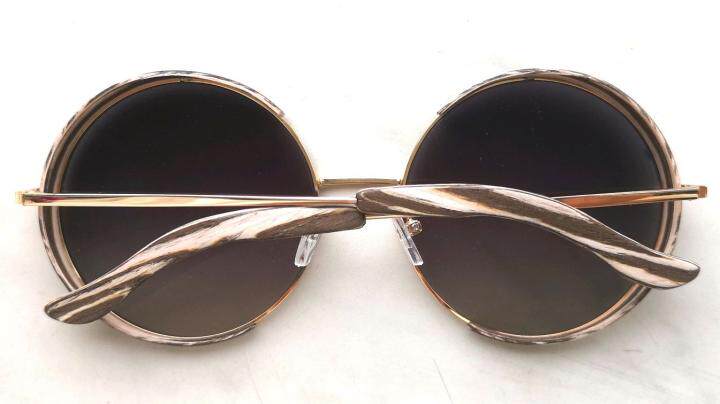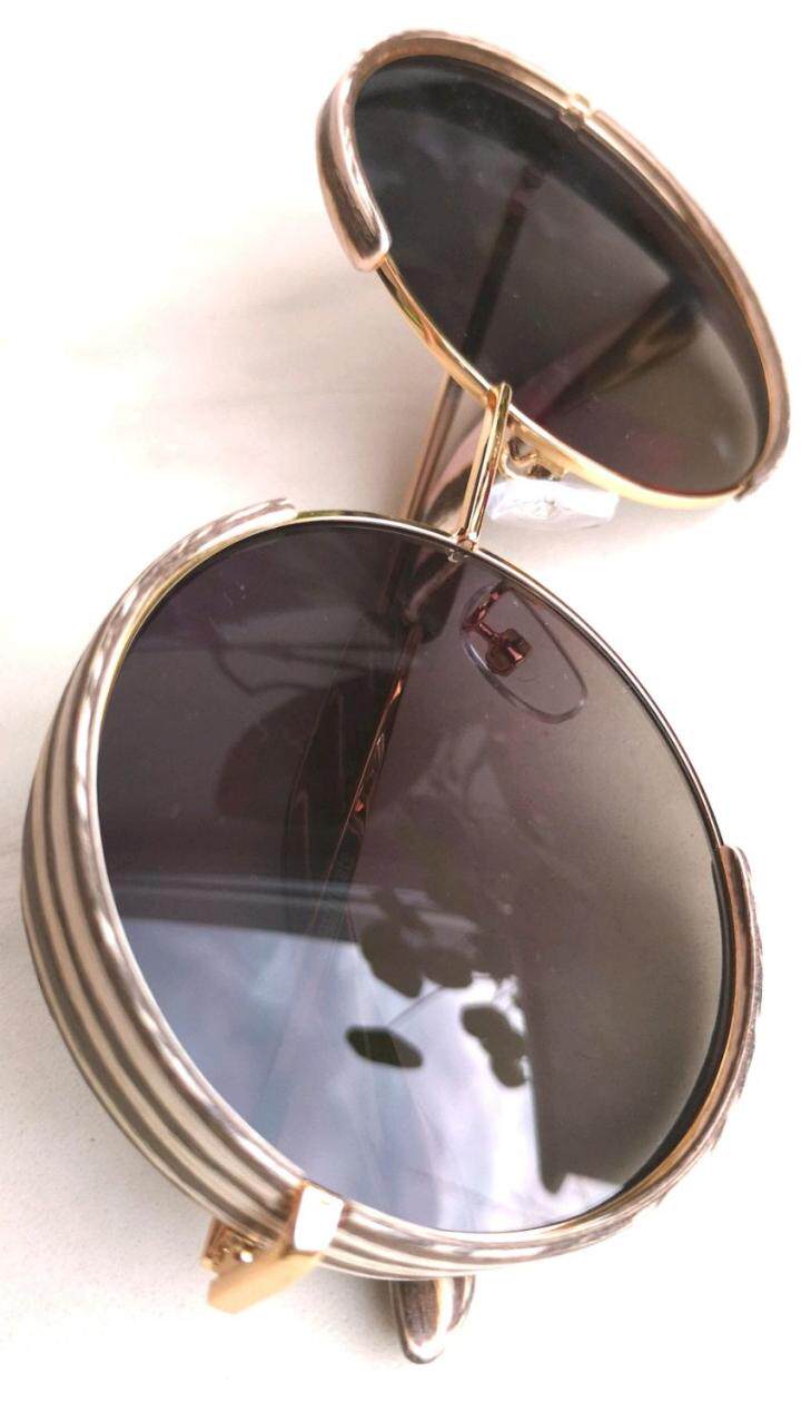 俄罗斯代购Round◇手作复古圆形灰色渐变斑马条纹金色边太阳眼镜