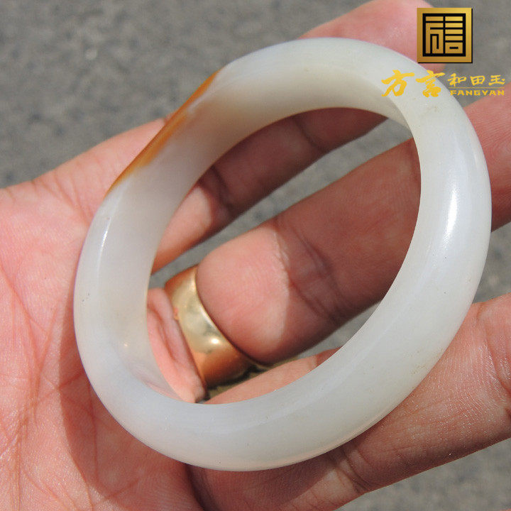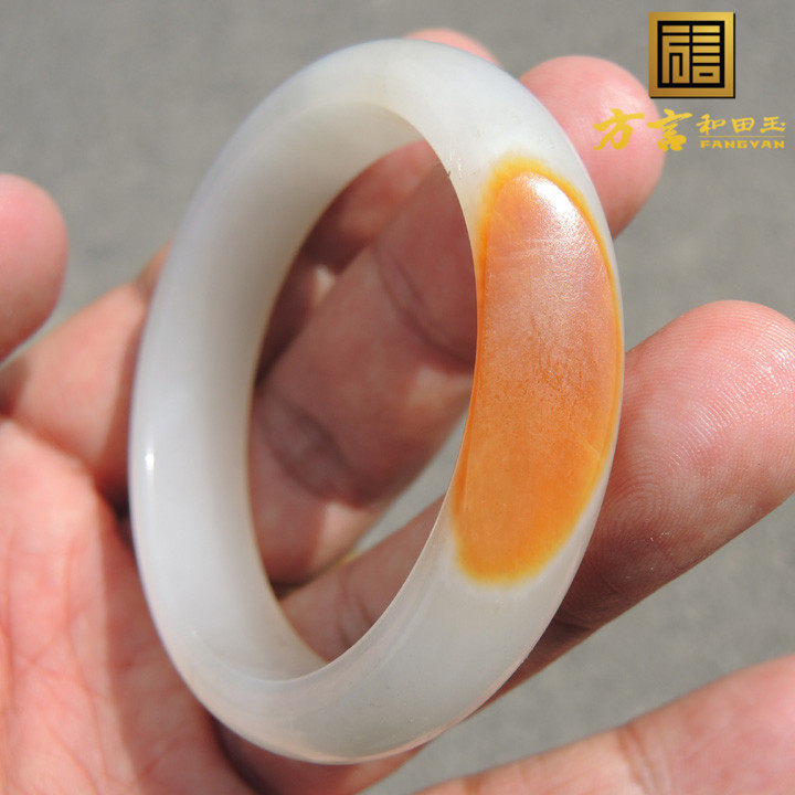 方言企业精品珍藏级聚红皮带青花羊脂白玉52口径籽料豪华手镯F