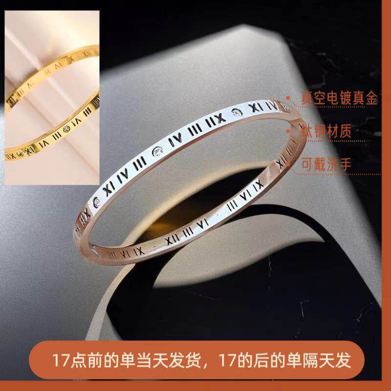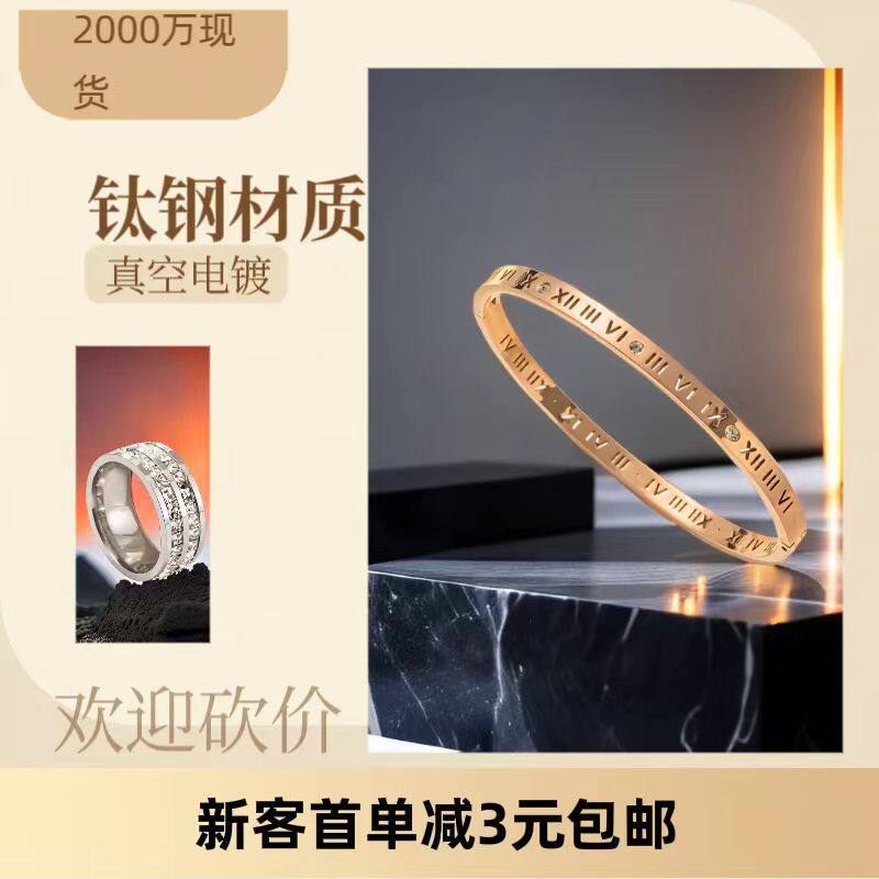 不锈钢手镯钛钢不掉色女新款高级感欧美简约圆圈diy爆款女士黑色