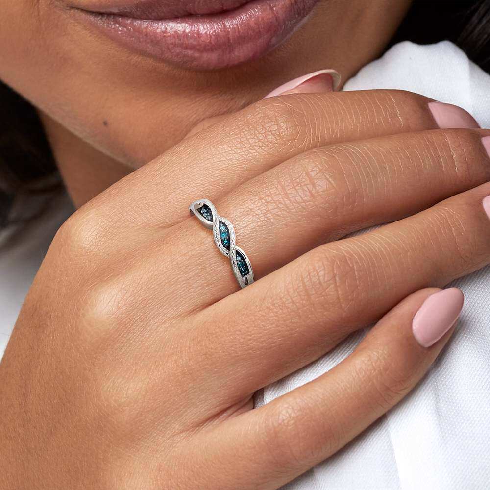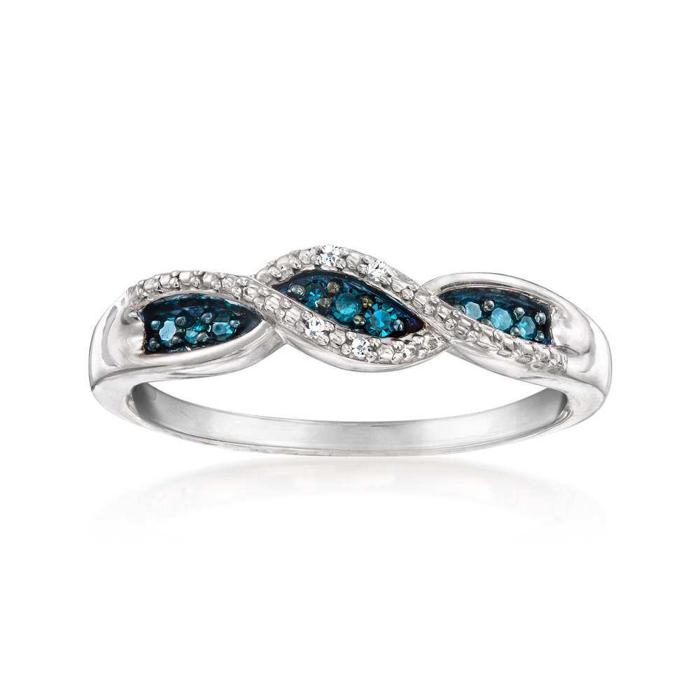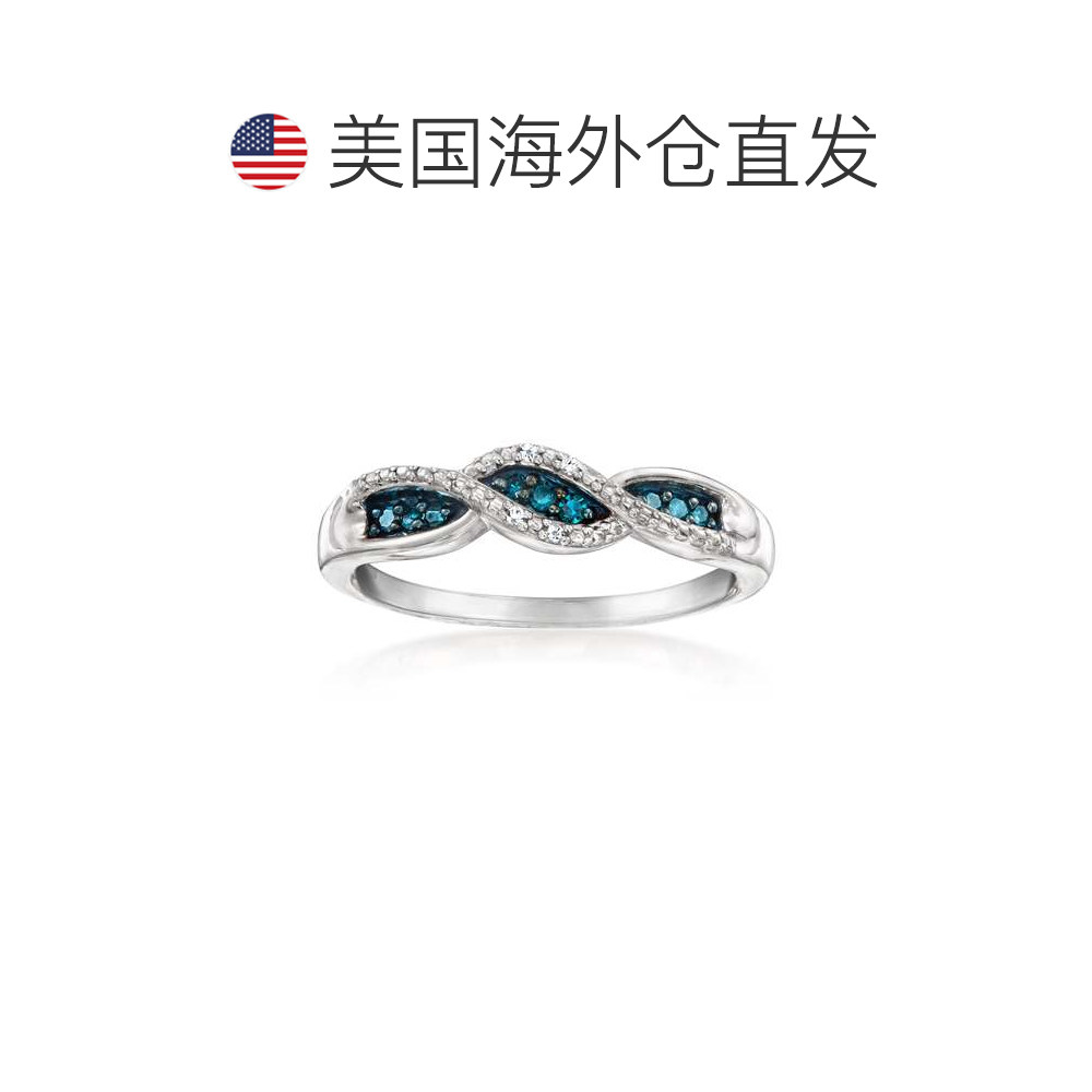 自营Ross-Simons White and Blue Diamond Twisted Ring in Sterl