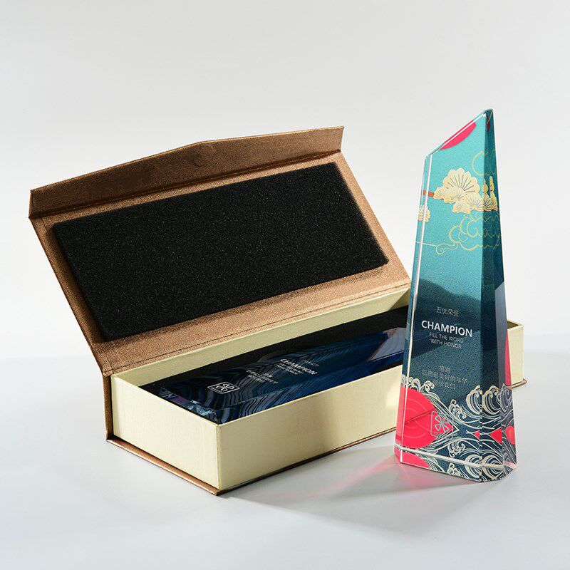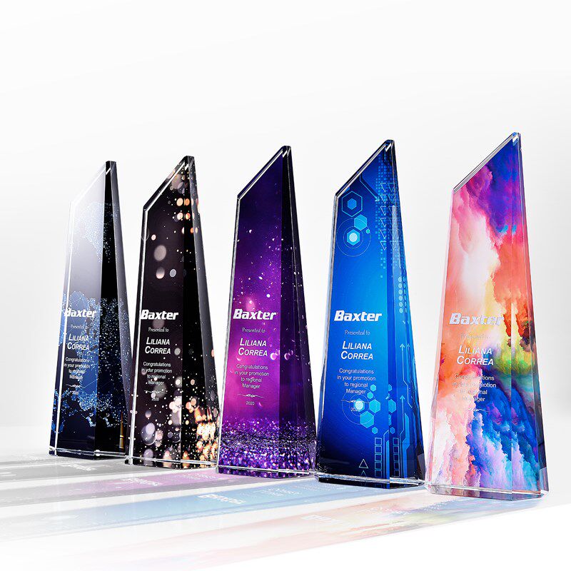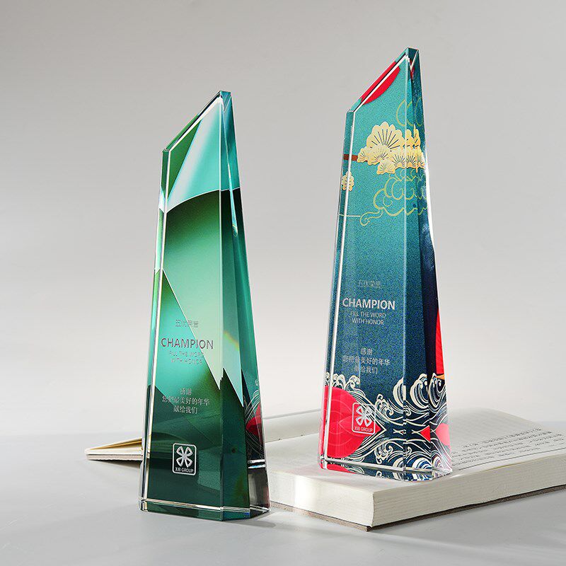 彩色水晶奖杯奖牌定制彩印蓝色绿色奖杯创意新款刻字制作销售年会