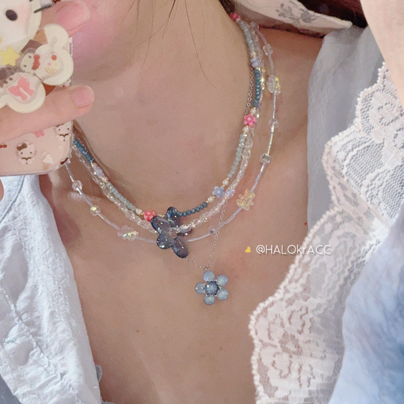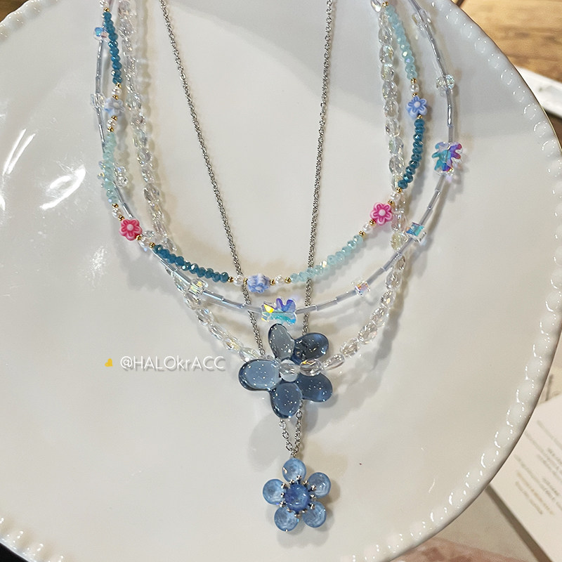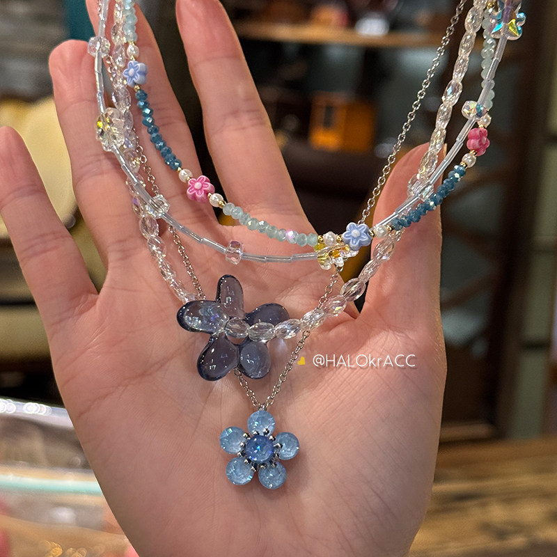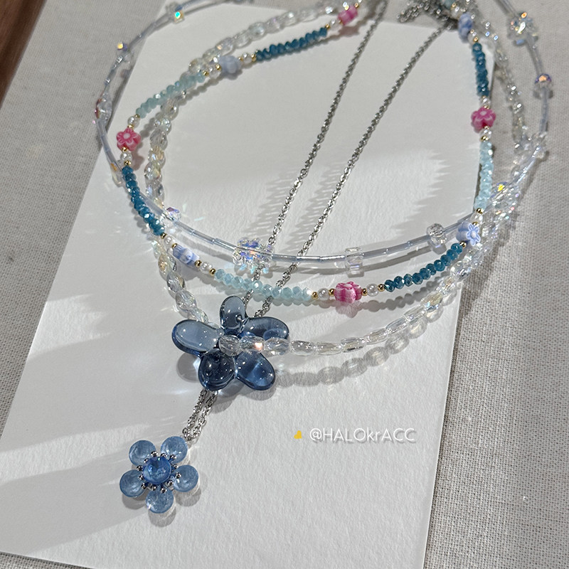 HALOkrACC韩代 星河情书 冰透银河蓝色旋转花朵 串珠项链
