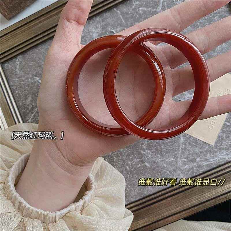 天然正品巴西红玛瑙手镯宽版妈妈款女款少女玉镯子本命年厂家