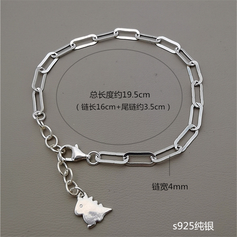 925纯银手链新款几何方形链条手环小众ins简约风男生女生手链礼物