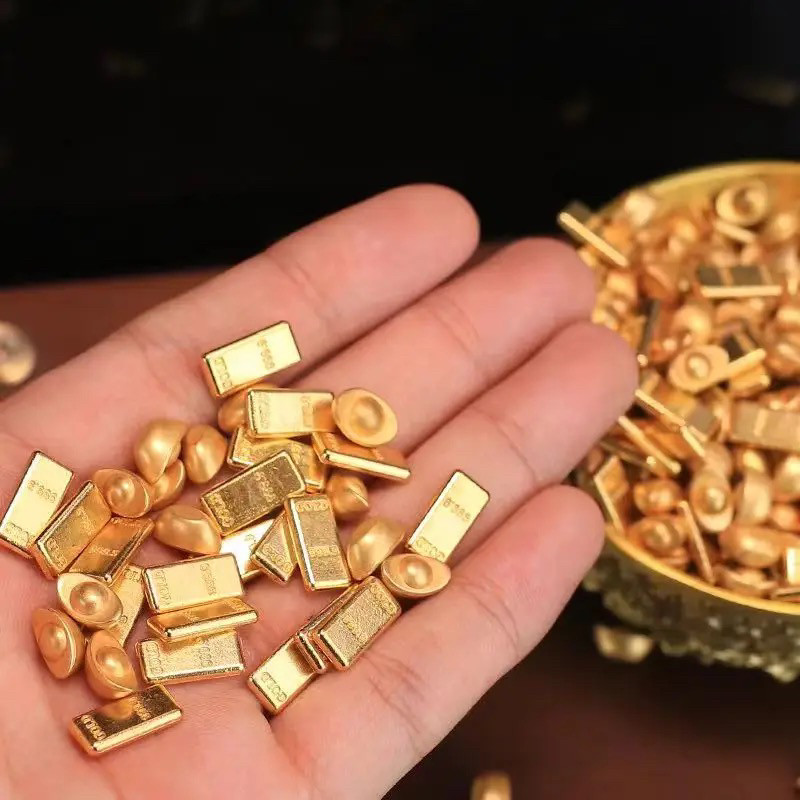 迷你实心金砖摆件开业乔迁聚宝盆配件招财进宝创意金条装饰小礼品