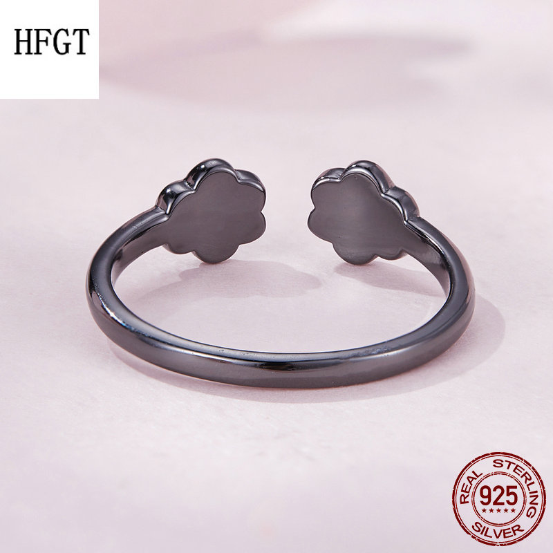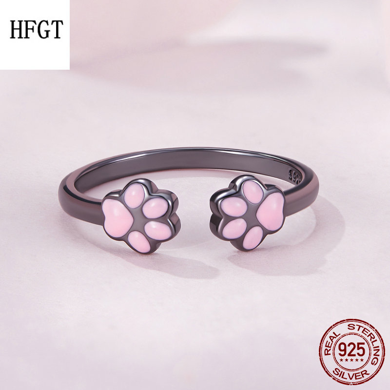 原创镀黑金黑色猫爪开口戒指 小猫咪可爱粉色爪印925纯银指环手饰