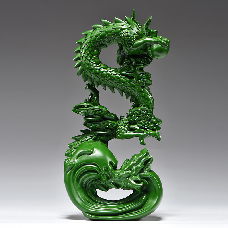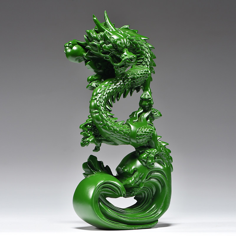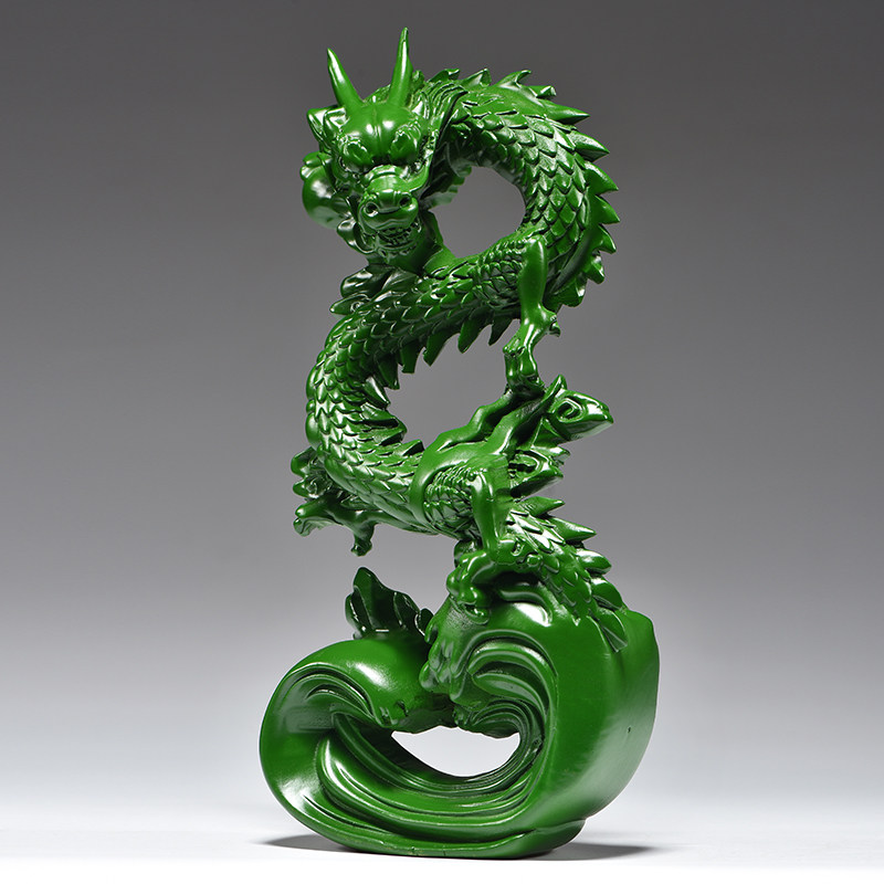 绿色木雕龙摆件实木质生肖青龙客厅办公家居补角装饰新店开业送礼