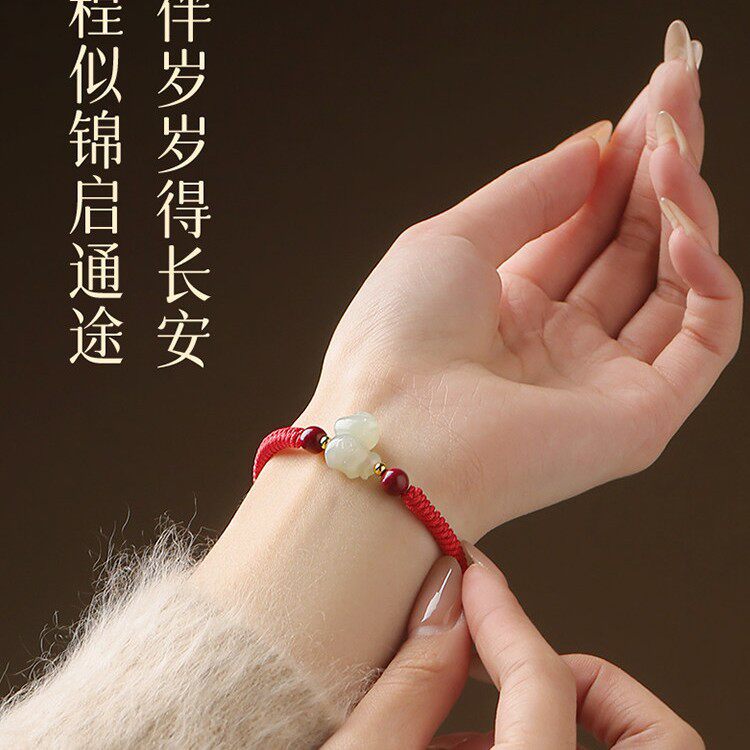 2026马年本命年和田玉小马红绳手链女款生肖马红色手绳新年礼物