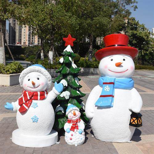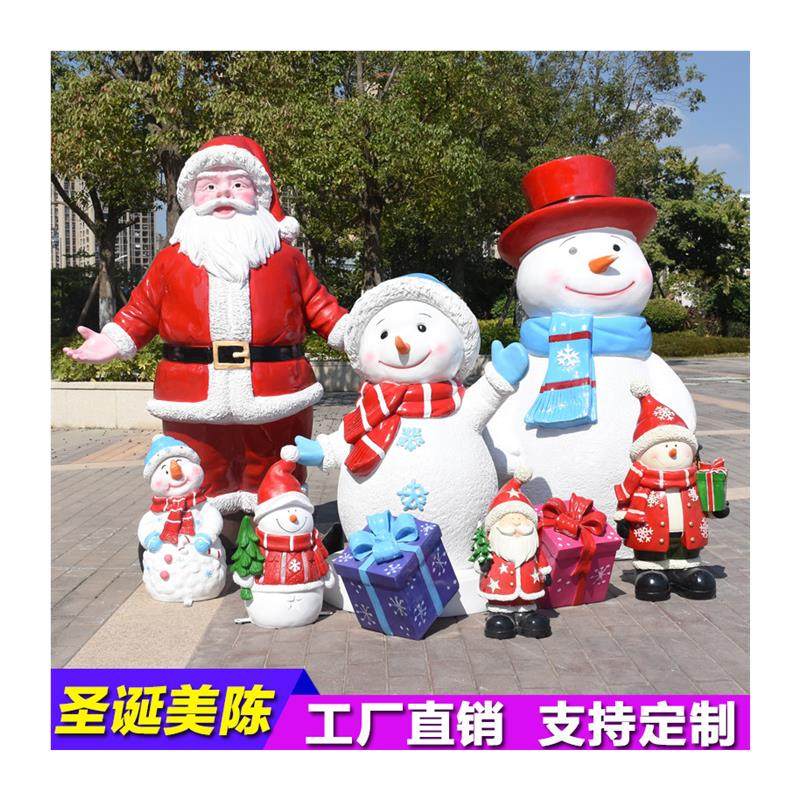 户外玻璃钢卡通圣诞老人雪人礼品盒雕塑摆件圣诞节礼物模型装饰品