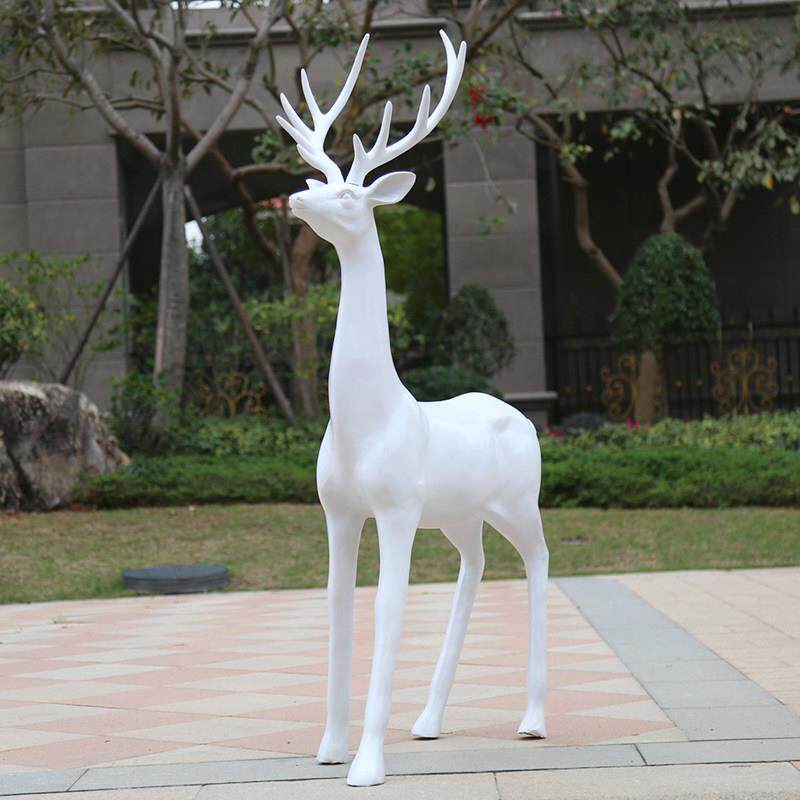 户外彷真玻璃纤维白鹿雕塑落地庭院园林景观商场婚礼装饰白色鹿摆